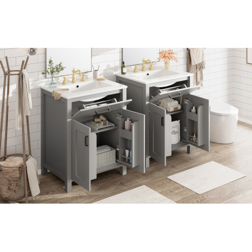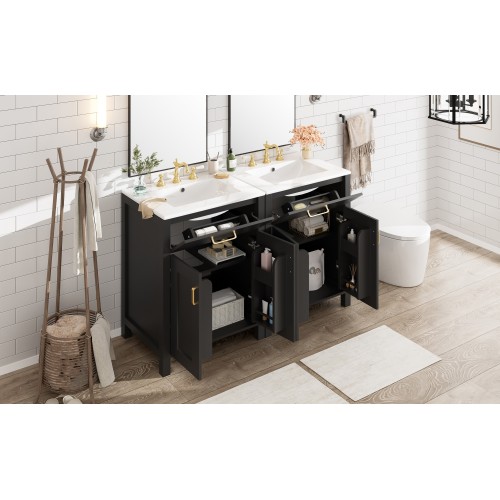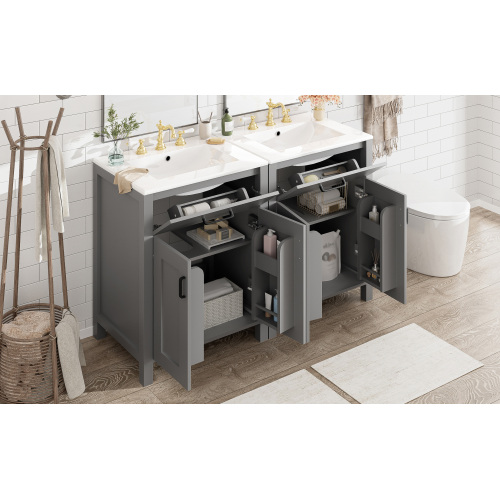 Modern 48-Inch Bathroom Vanity with Ceramic Sink, Soft-Close Doors, Flip Drawer, Double-Layer Door Shelves, Elegant Storage Solution