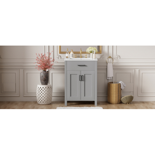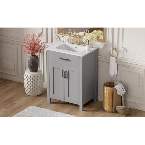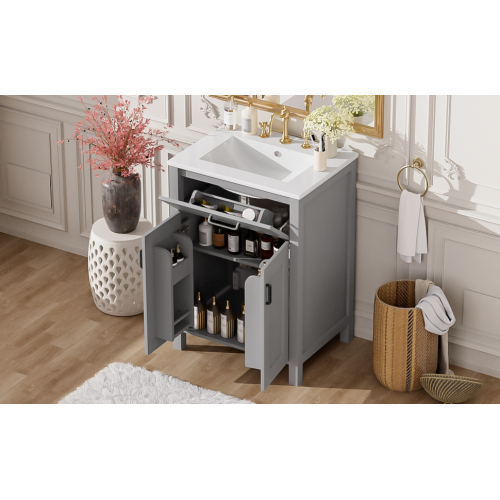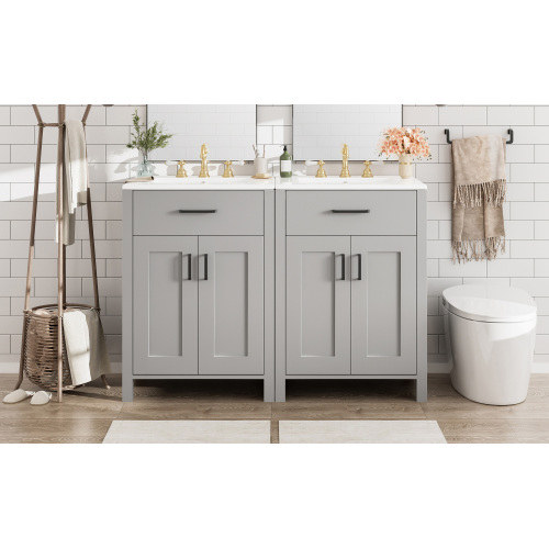 Product Name: Modern 48-Inch Bathroom Vanity with Ceramic Sink, Soft-Close Doors, Flip Drawer, Double-Layer Door Shelves, Elegant Storage Solution