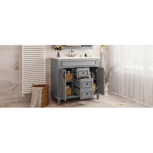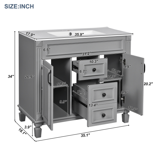 Product Name: 36'' Bathroom Vanity with Top Sink, Modern Bathroom Storage Cabinet with 2 Soft Closing Doors and 2 Drawers, Single Sink Bathroom Vanity