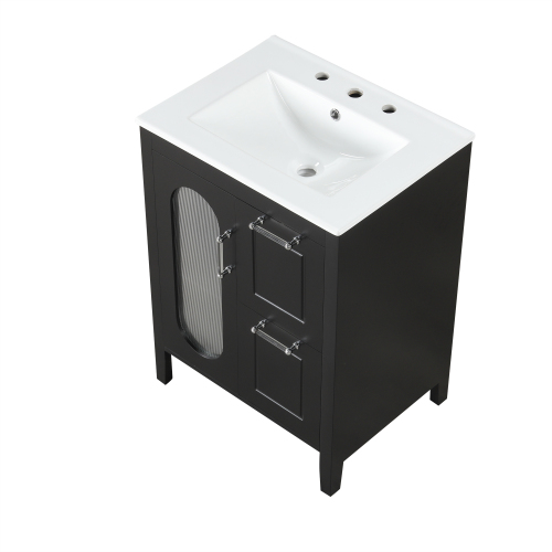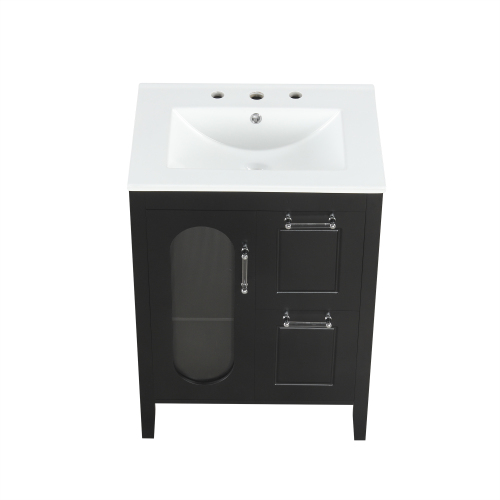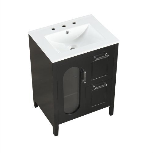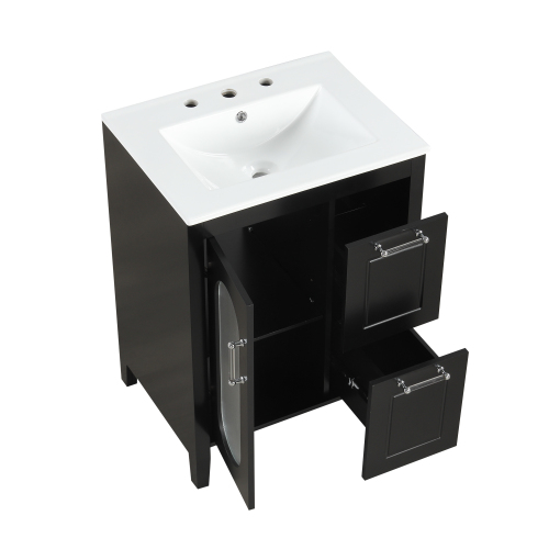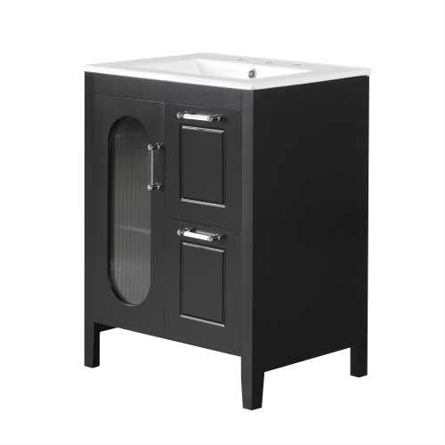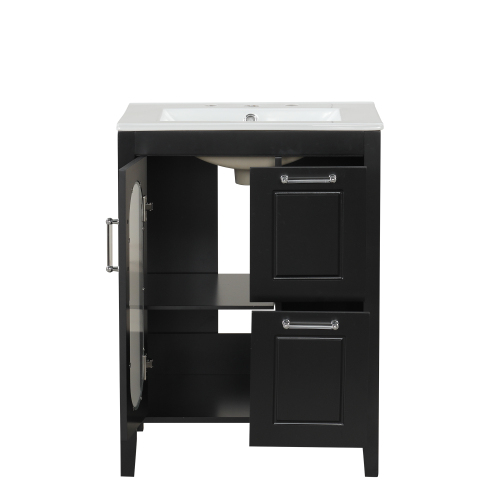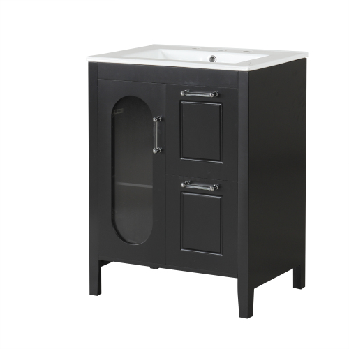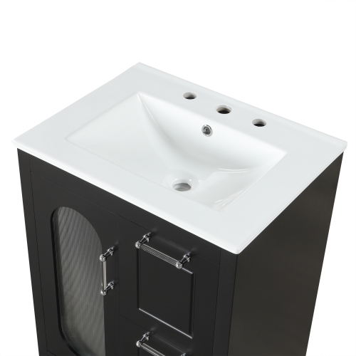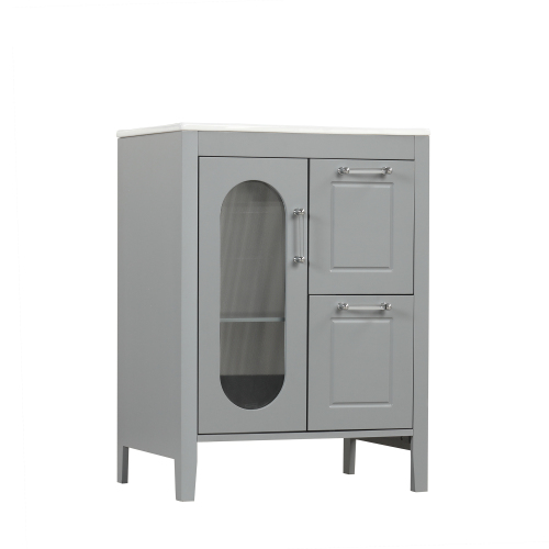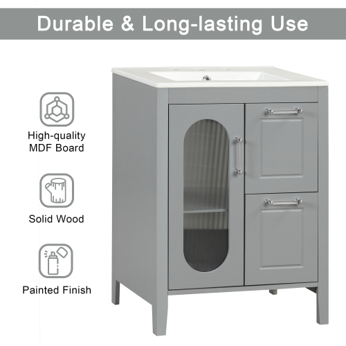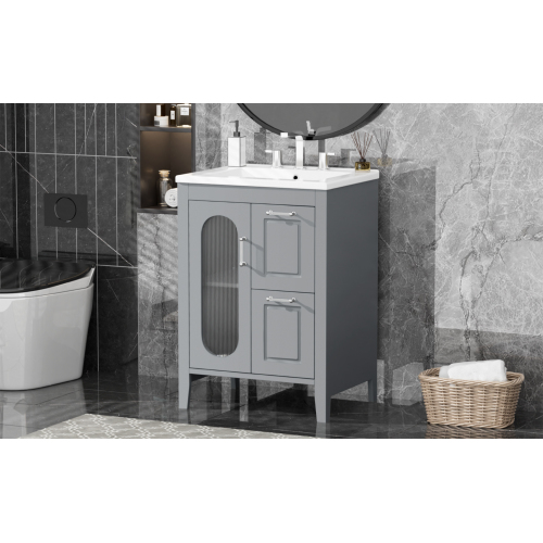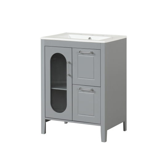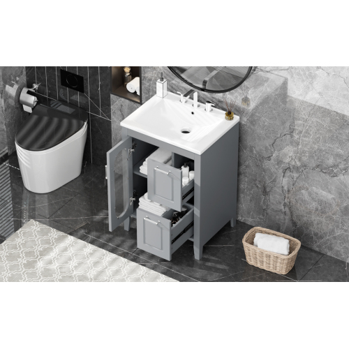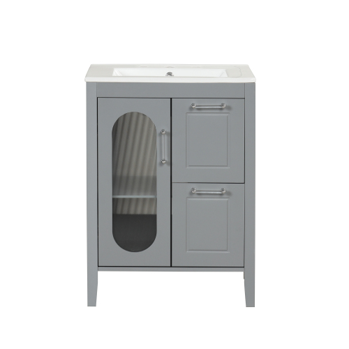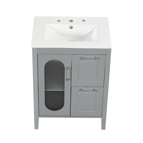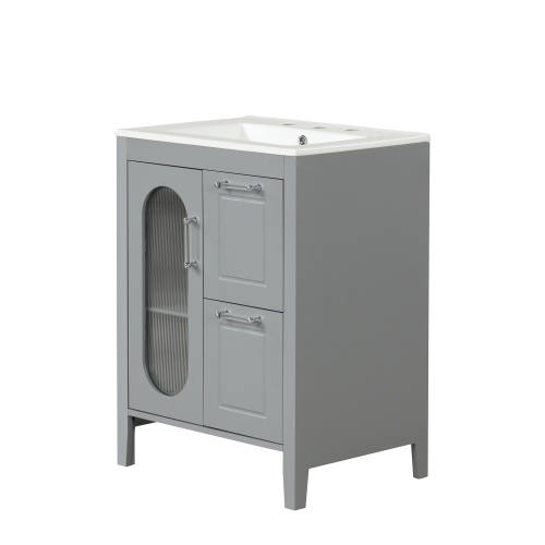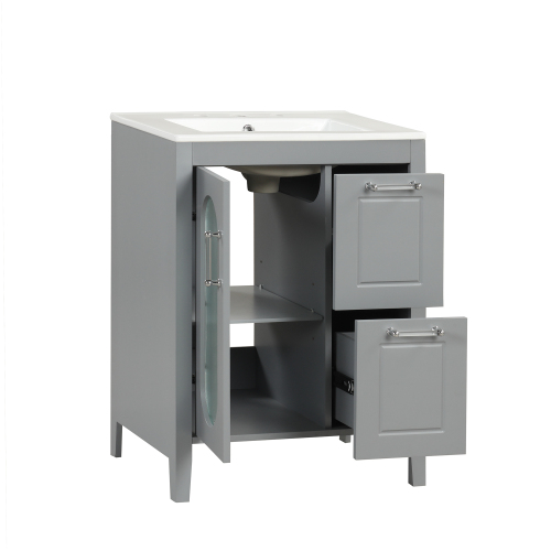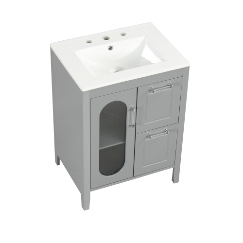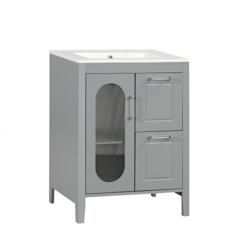 Product Name: 24" Bathroom Vanity with Sink, Bathroom Vanity Cabinet with Two Drawers and Door, Adjustable Shelf, Solid Wood and MDF, Grey (Old Sku:WF309411AAE)