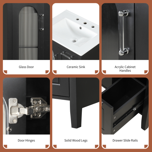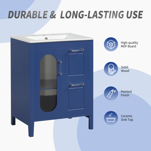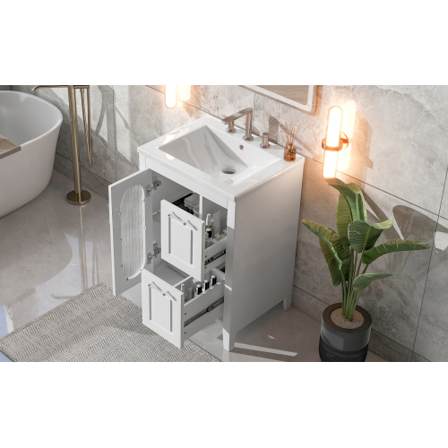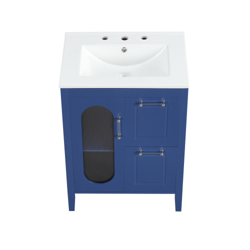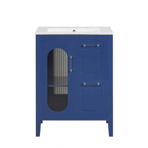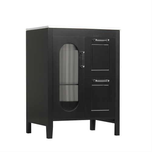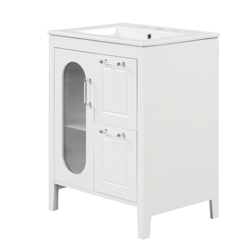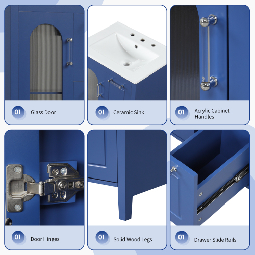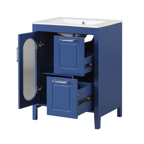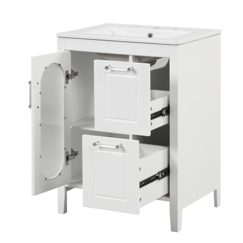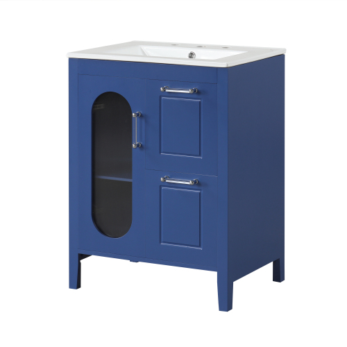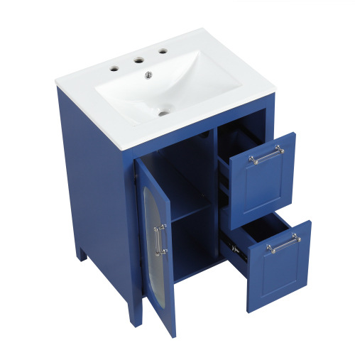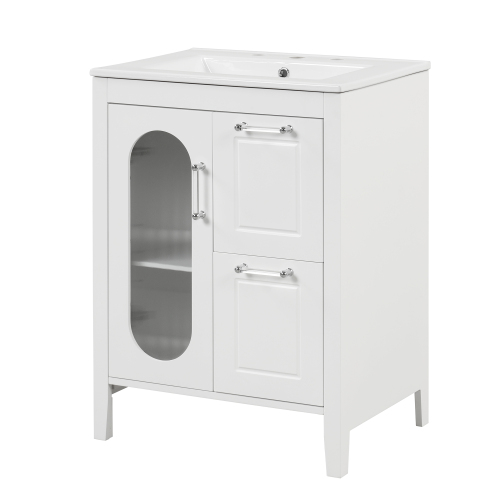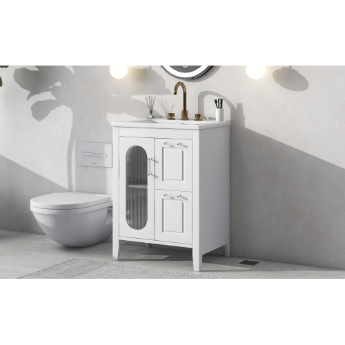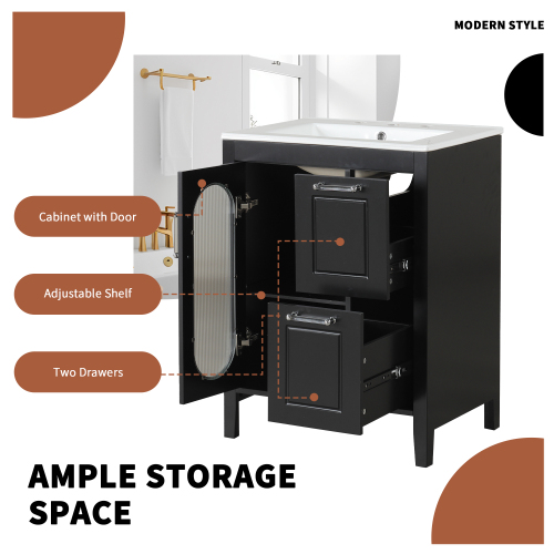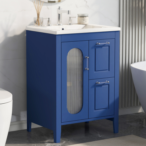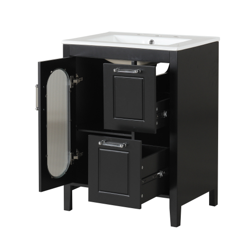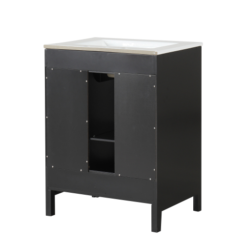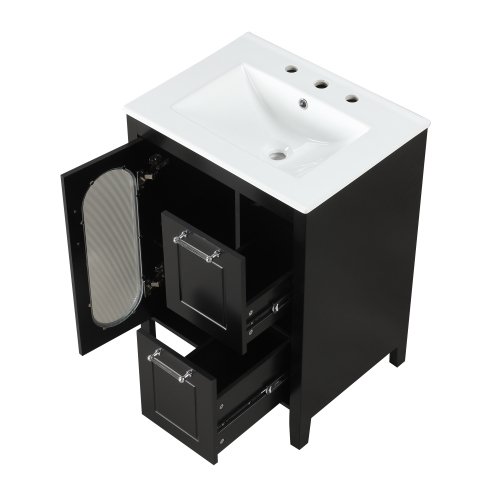 Product Name: 24" Bathroom Vanity with Sink, Bathroom Vanity Cabinet with Two Drawers and Door, Adjustable Shelf, Solid Wood and MDF, Grey (Old Sku:WF309411AAE)