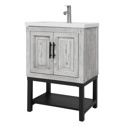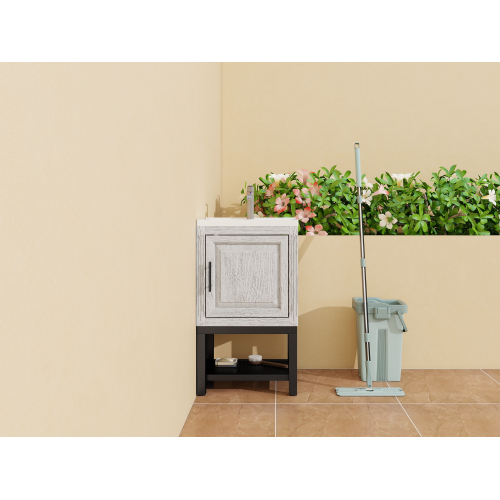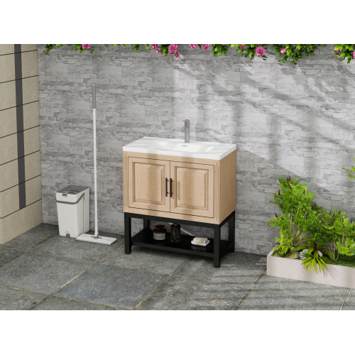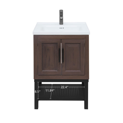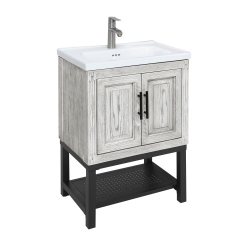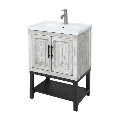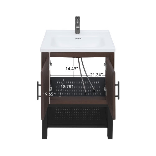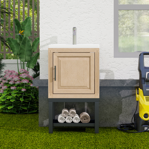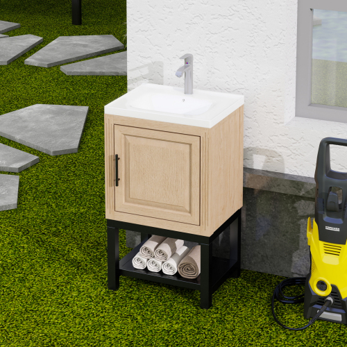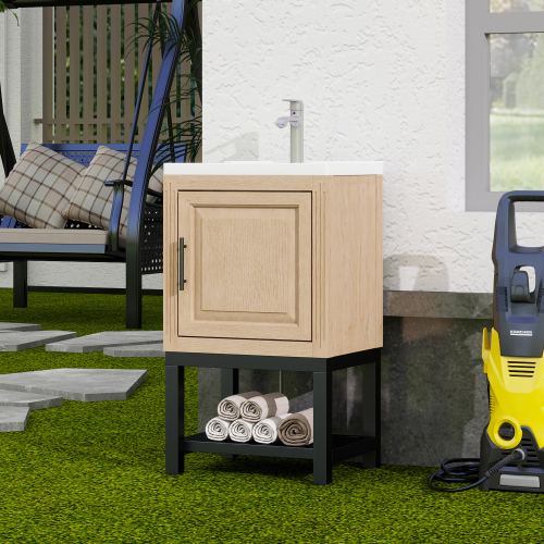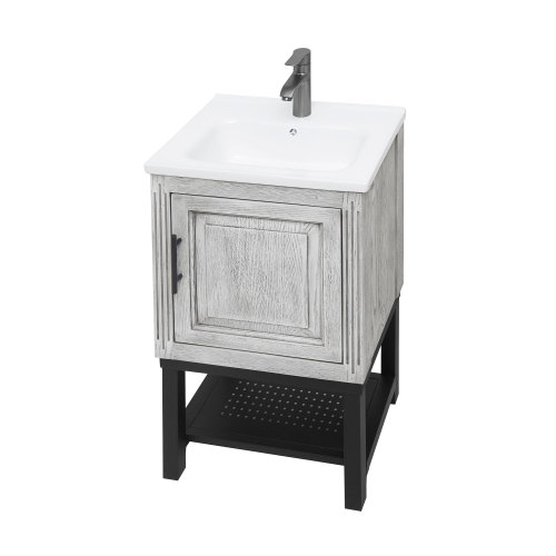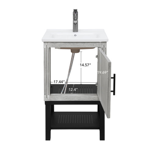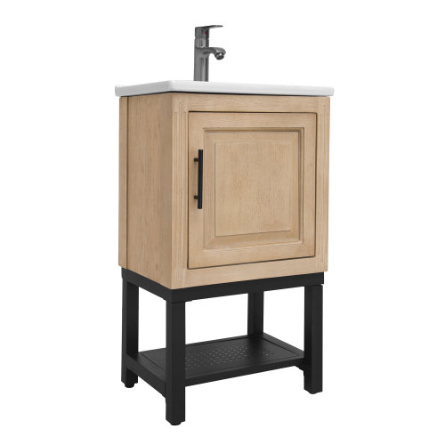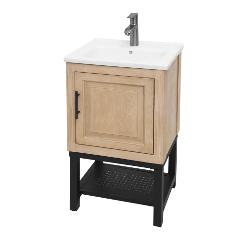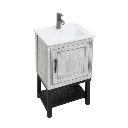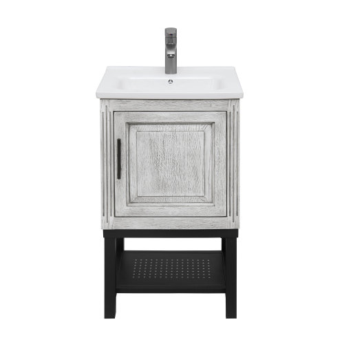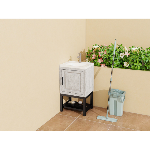 Product Name: 20" Small Bathroom Vanity with Sink & Hot and Cold Faucet, Freestanding Bathroom Cabinet with White Ceramic Basin, Bathroom Storage Organizer with 1 Doors and Open iron Shelf
