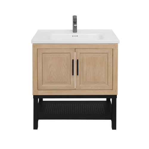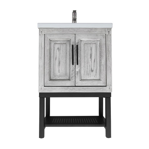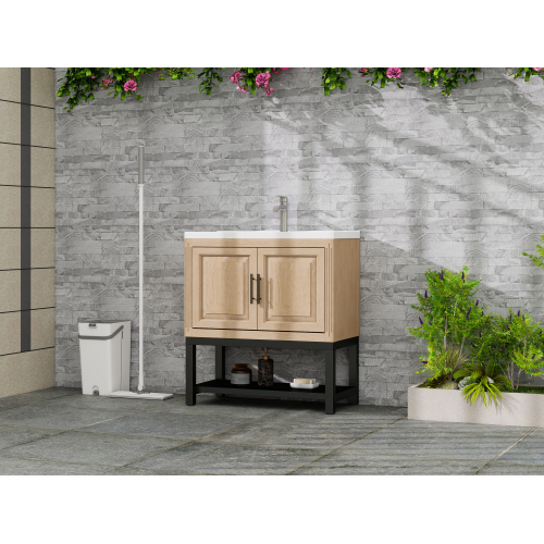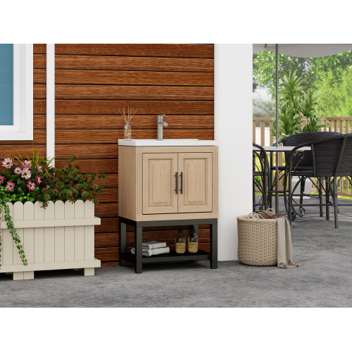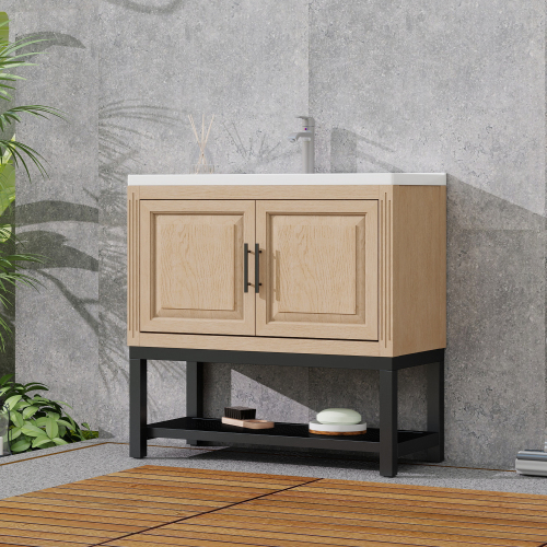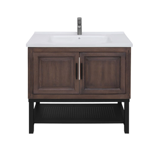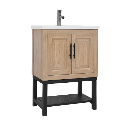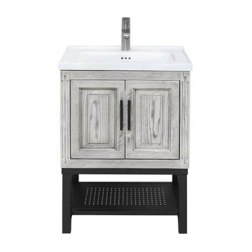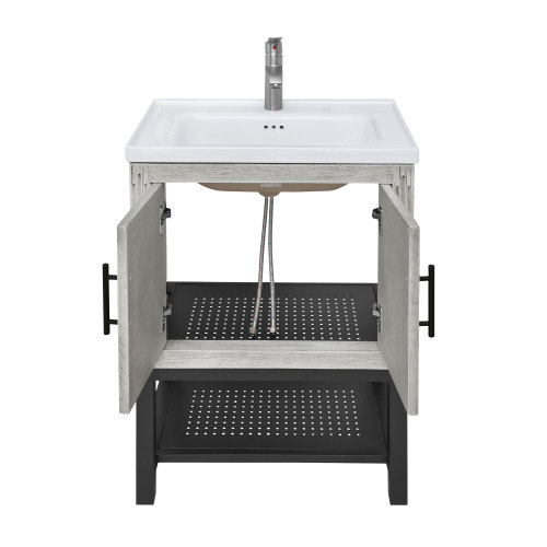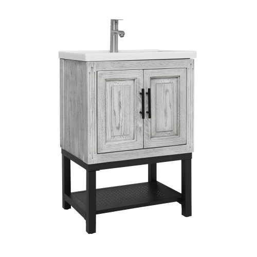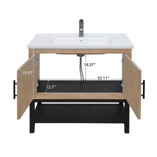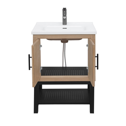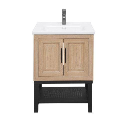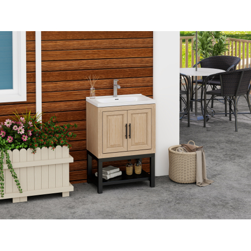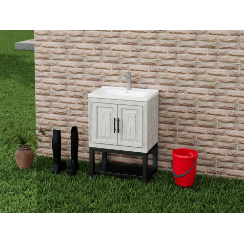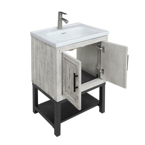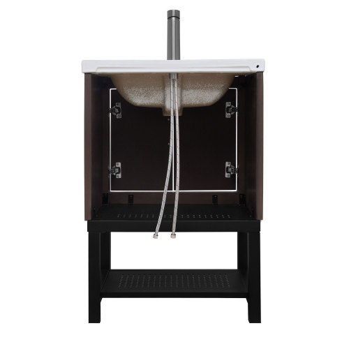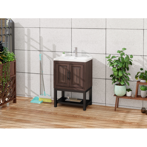 Product Name: 20" Small Bathroom Vanity with Sink & Hot and Cold Faucet, Freestanding Bathroom Cabinet with White Ceramic Basin, Bathroom Storage Organizer with 1 Doors and Open iron Shelf