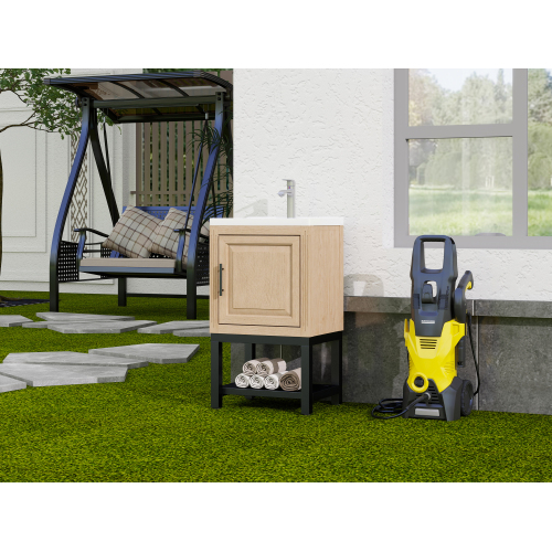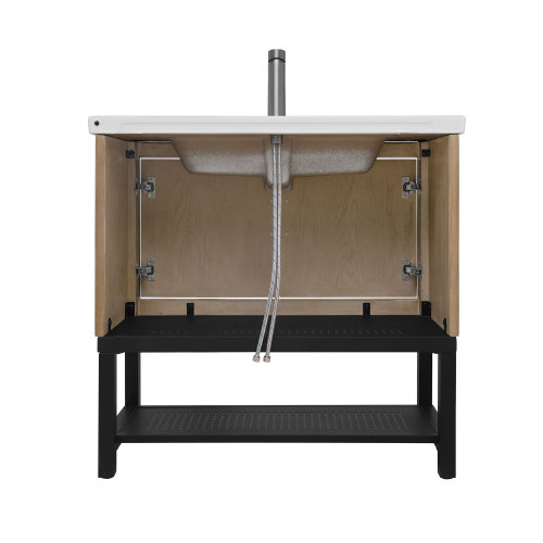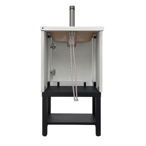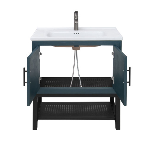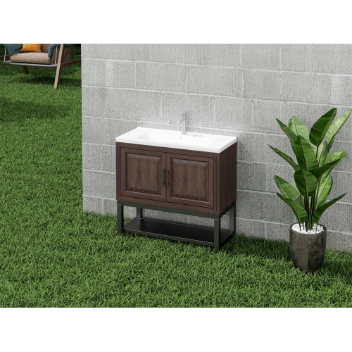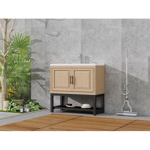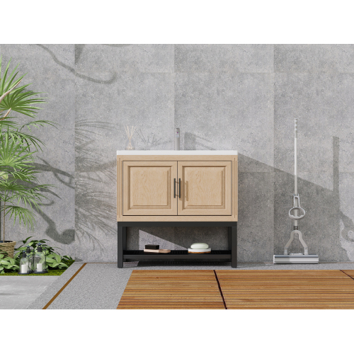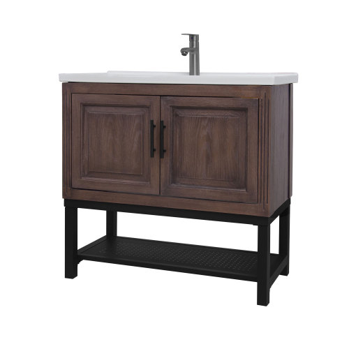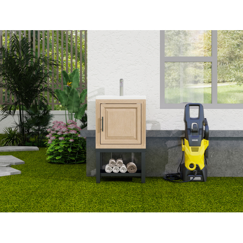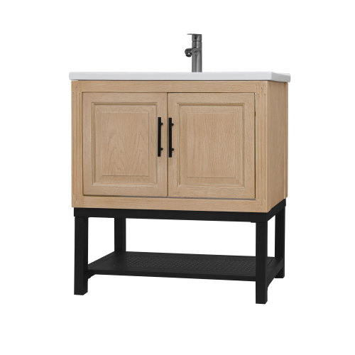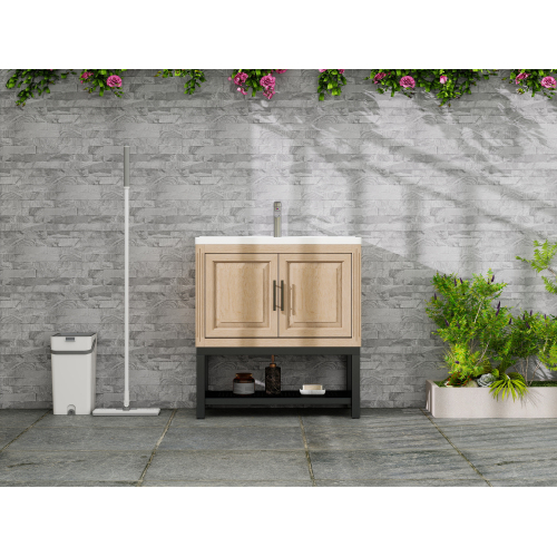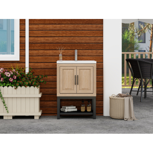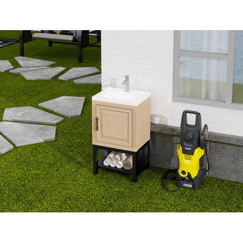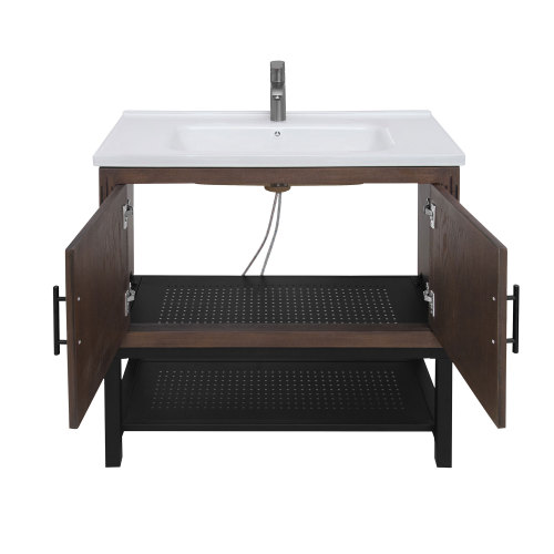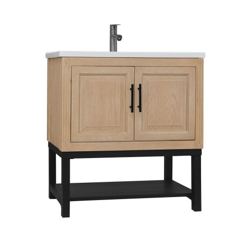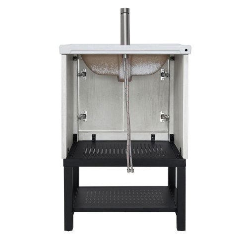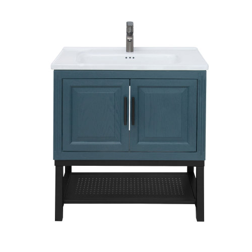 Product Name: 20" Small Bathroom Vanity with Sink & Hot and Cold Faucet, Freestanding Bathroom Cabinet with White Ceramic Basin, Bathroom Storage Organizer with 1 Doors and Open iron Shelf