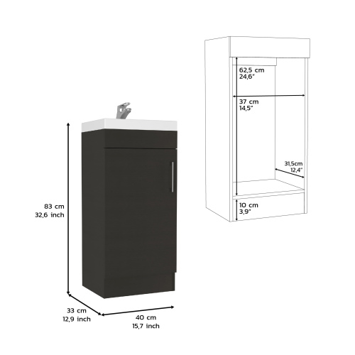 Product Name: Sevilla Bathroom Vanity with Sink, Single Door Cabinet, Black