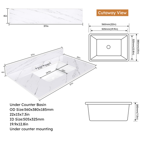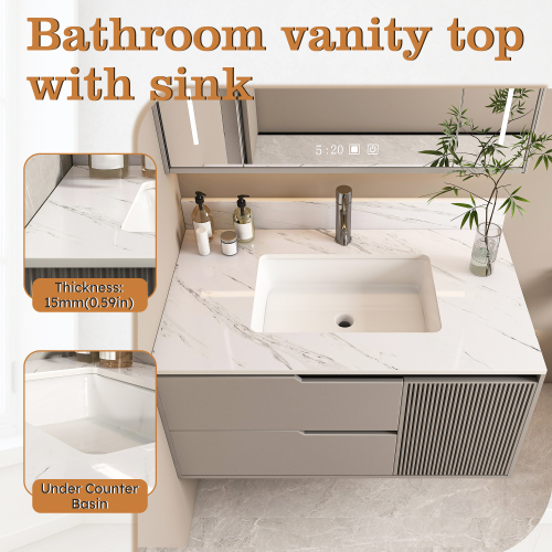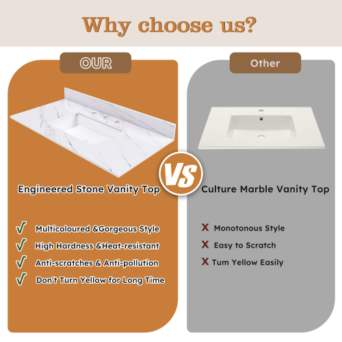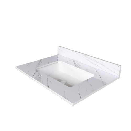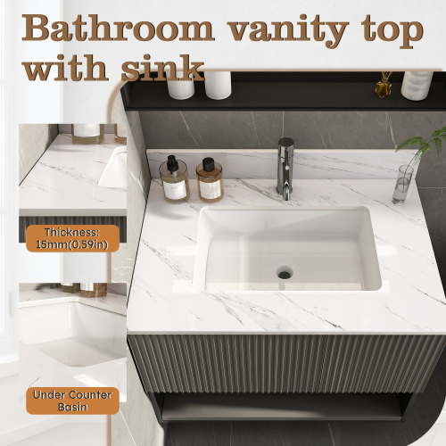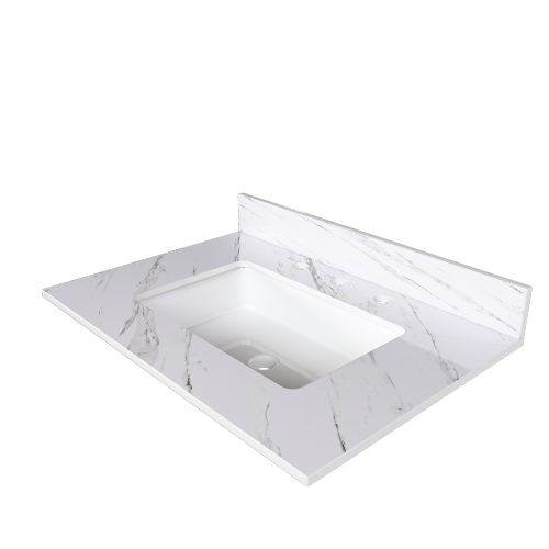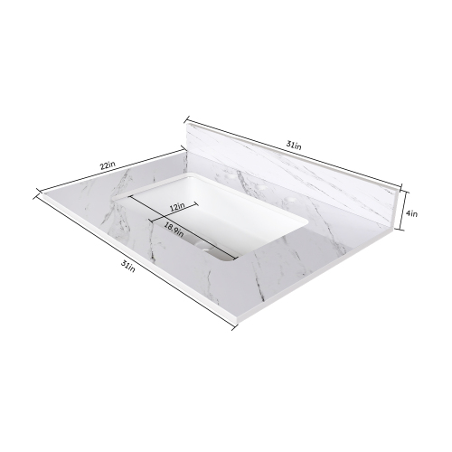 Product Name: 31 Inch Marble Vanity Top, White Vanity Top with Pre-drilled Faucet Holes, Bathroom Vanity Top with Undermount Rectangular Middle Sink and 4" Height Backsplash, Bianco Carrara Venato