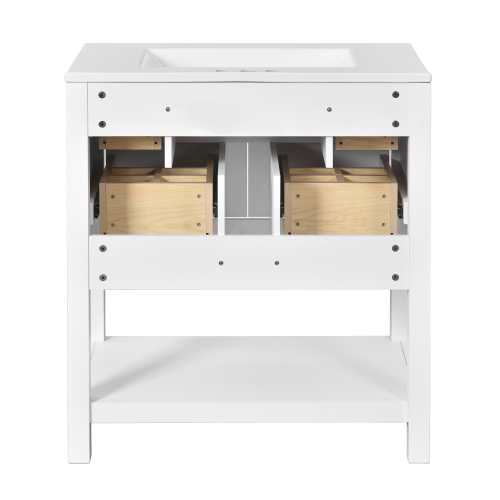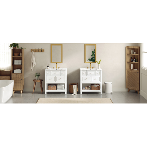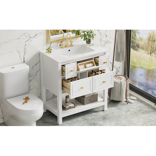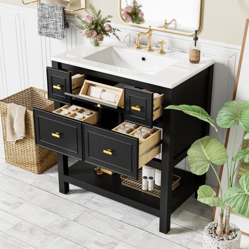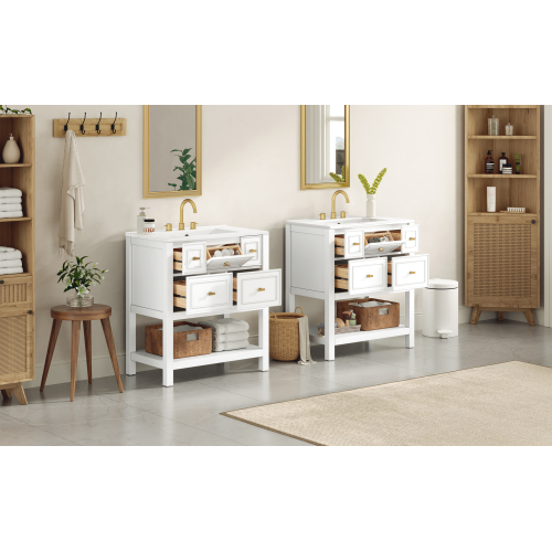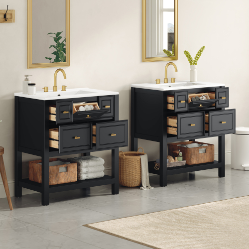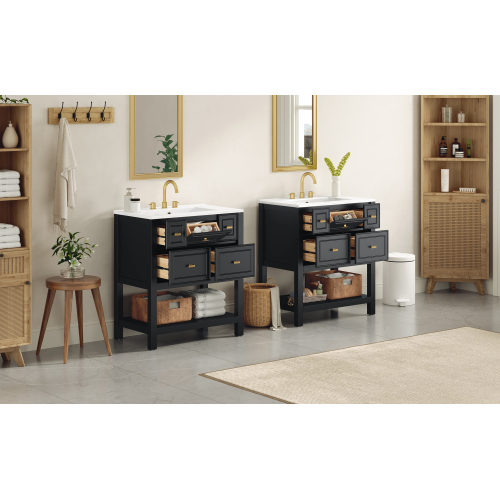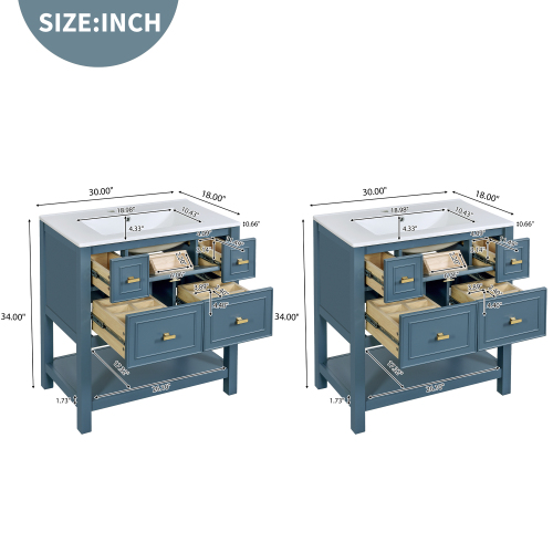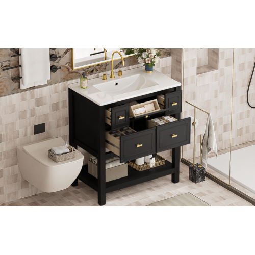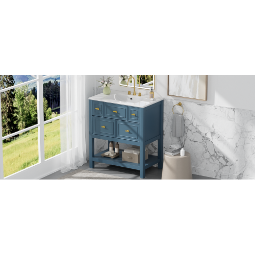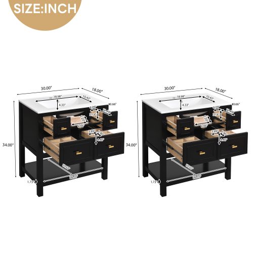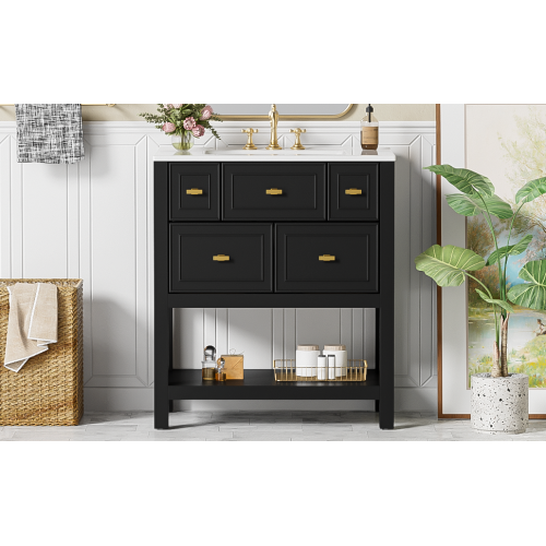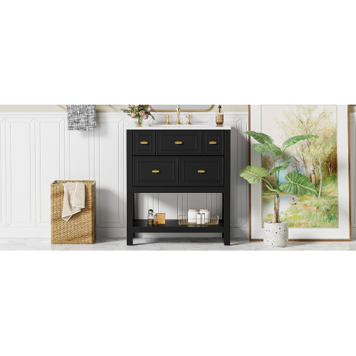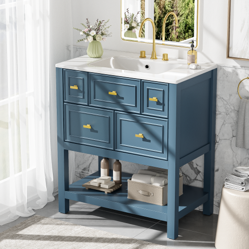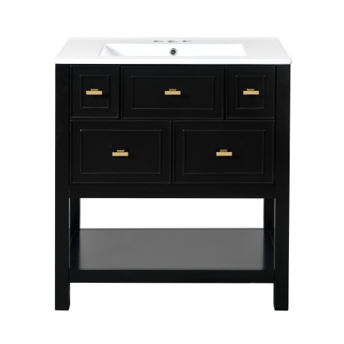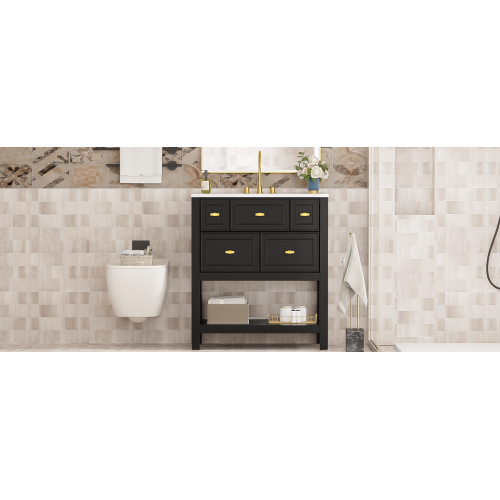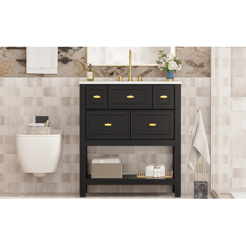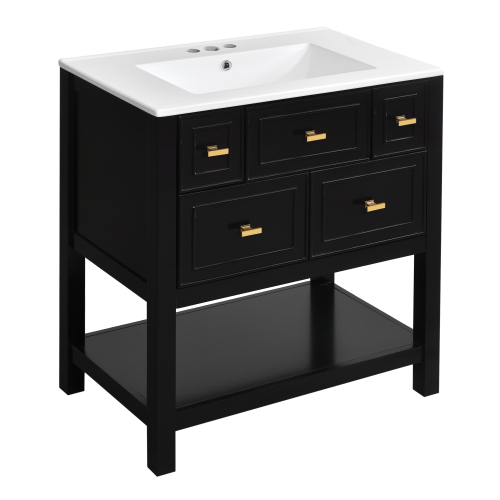 Product Name: 30'' Bathroom Vanity with Ceramic Sink Combo, Free Standing Single Vanity Set with 5 Drawers, Solid Wood Frame Bathroom Storage Cabinet