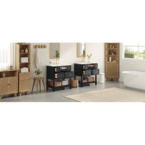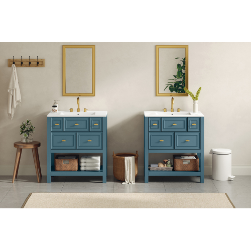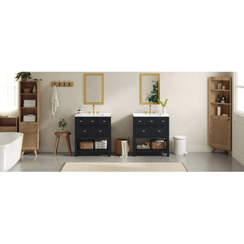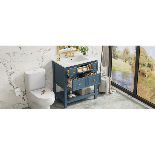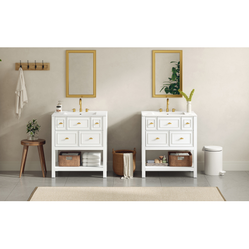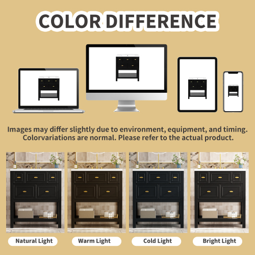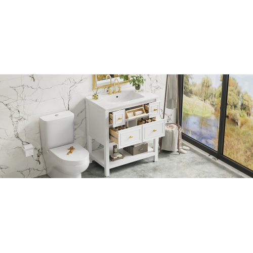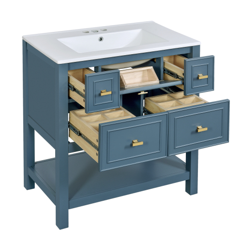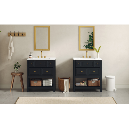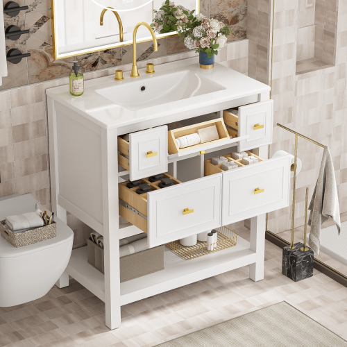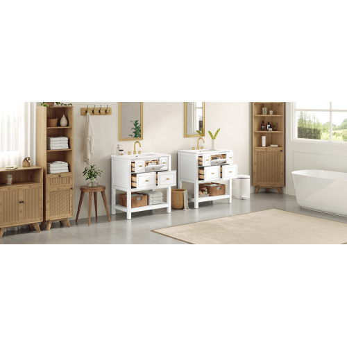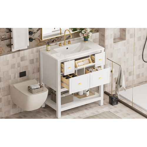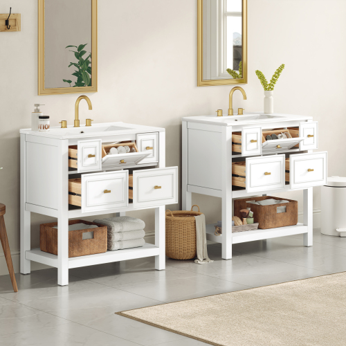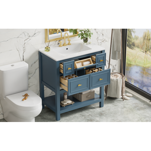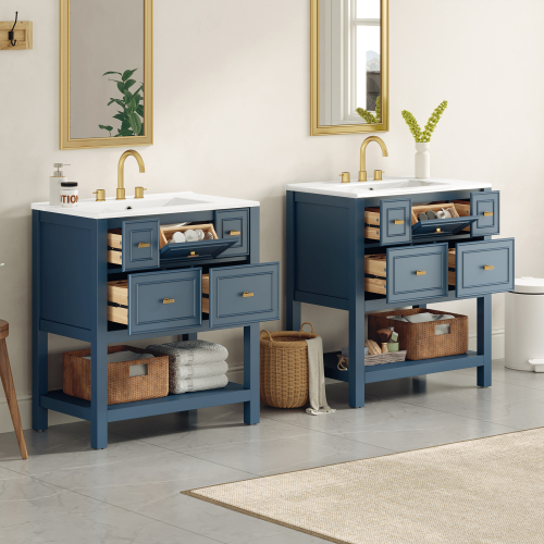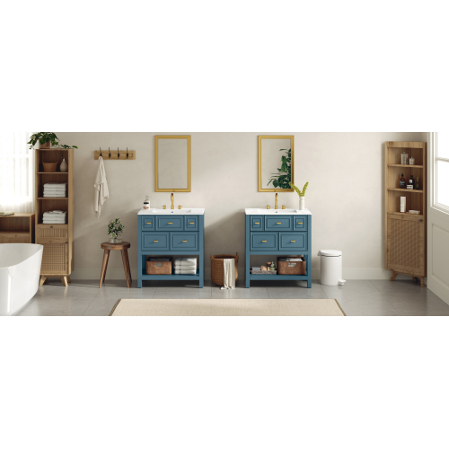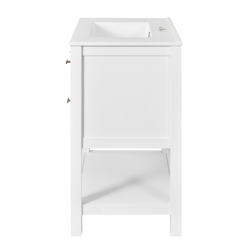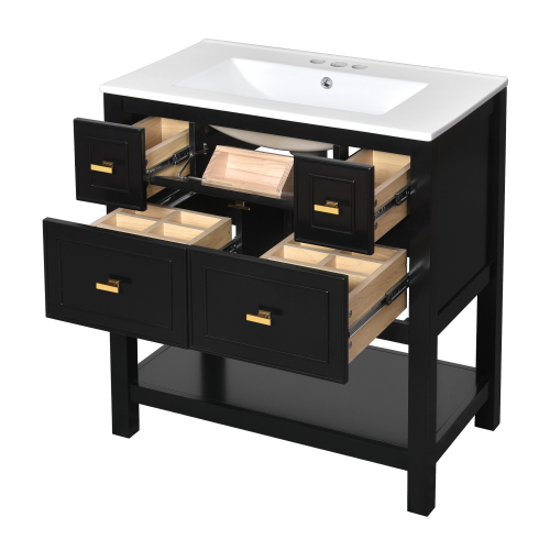 Product Name: 30'' Bathroom Vanity with Ceramic Sink Combo, Free Standing Single Vanity Set with 5 Drawers, Solid Wood Frame Bathroom Storage Cabinet