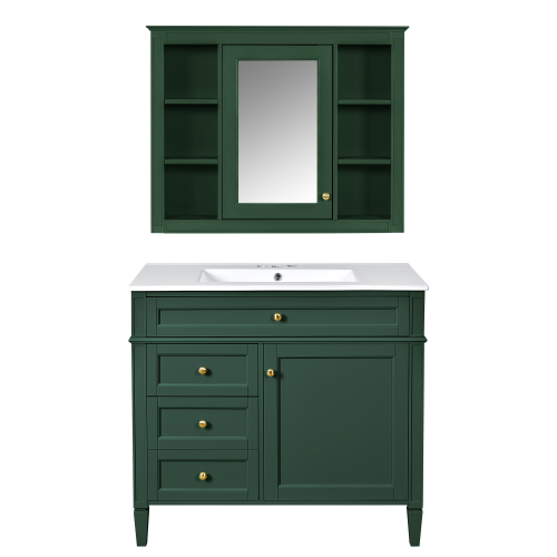 36'' Bathroom Vanity with Medicine Cabinet, Modern Bathroom Storage Cabinet with 2 Soft Closing Doors and 4 Drawers, Single Sink Bathroom Vanity