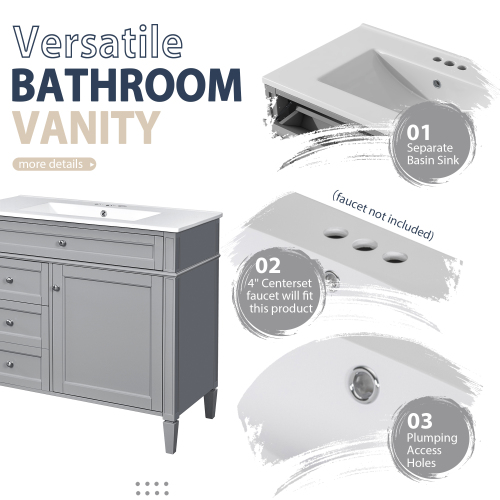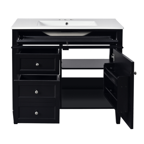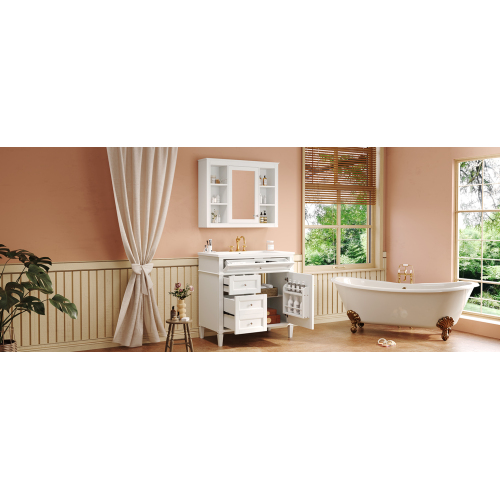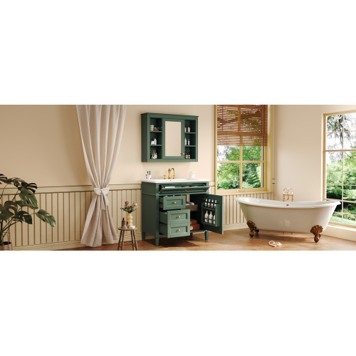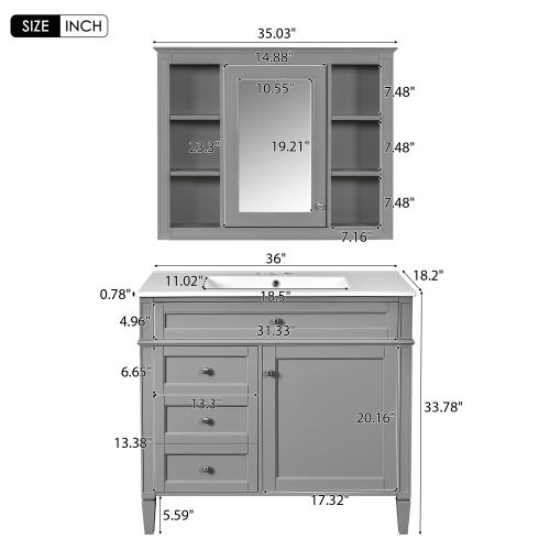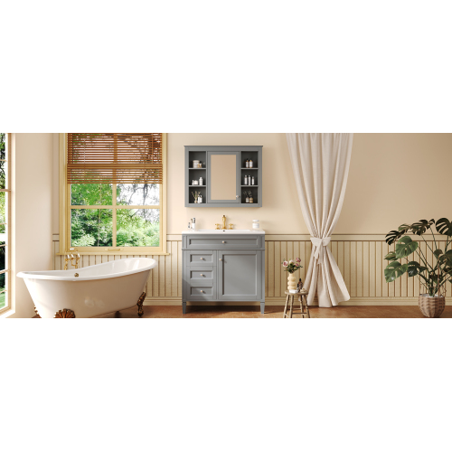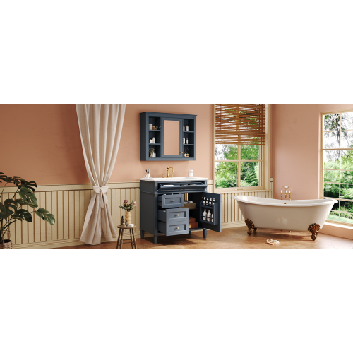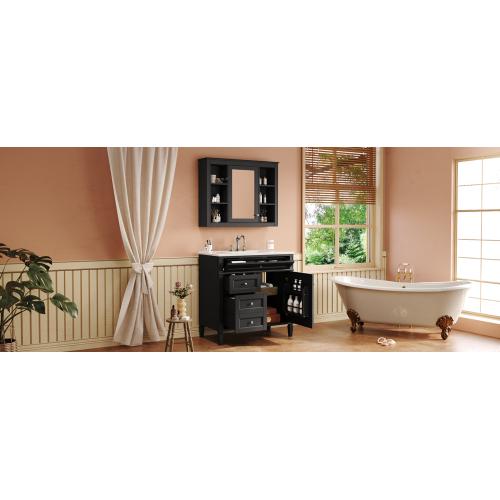 • 36'' Bathroom Vanity with Medicine Cabinet, Modern Bathroom Storage Cabinet with 2 Soft Closing Doors and 4 Drawers, Single Sink Bathroom Vanity