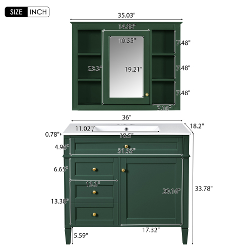 Product Name: 36'' Bathroom Vanity with Medicine Cabinet, Modern Bathroom Storage Cabinet with 2 Soft Closing Doors and 4 Drawers, Single Sink Bathroom Vanity