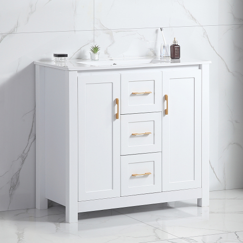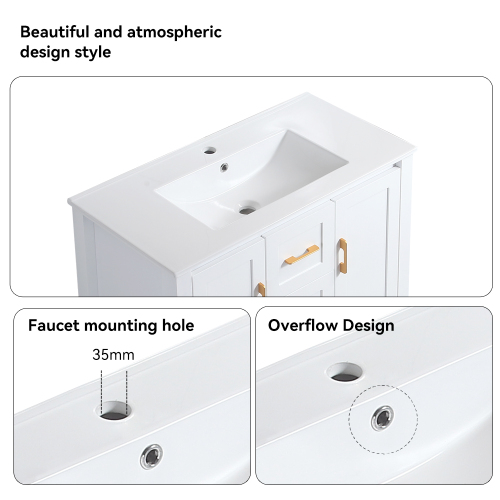 Product Name: 36"White Bathroom Vanity with Single Sink, Combo Cabinet Undermount Sink, Bathroom Storage Cabinet with 2 Doors and 2 Drawer, Soft Closing, Multifunctional Storage