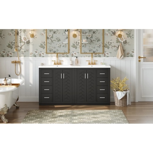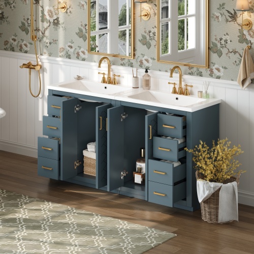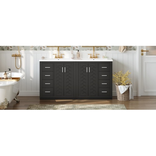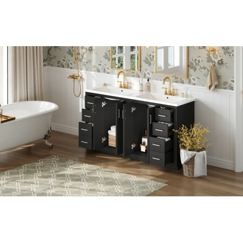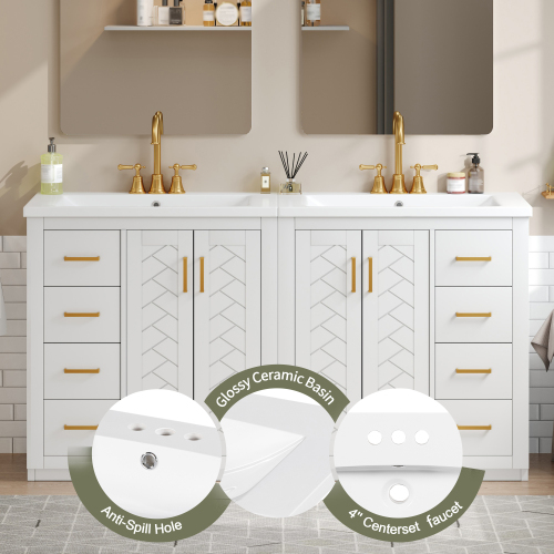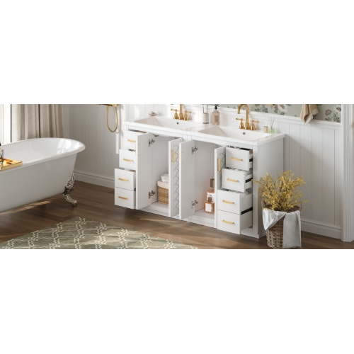 Product Name: 60'' Bathroom Vanity Set with Ceramic Sink (Separate),Solid Wood Frame Bathroom Storage Cabinet, Freestanding Vanity Set with Drawers& Soft Closing Doors