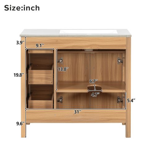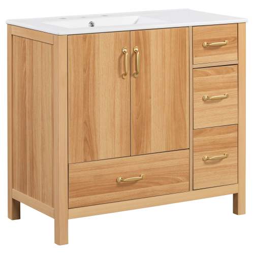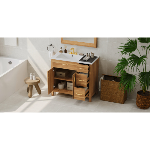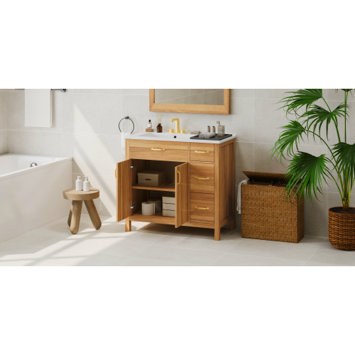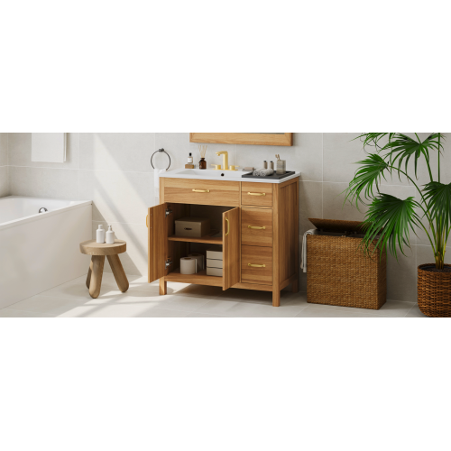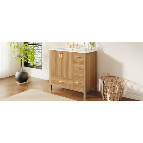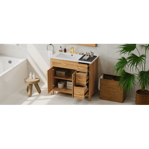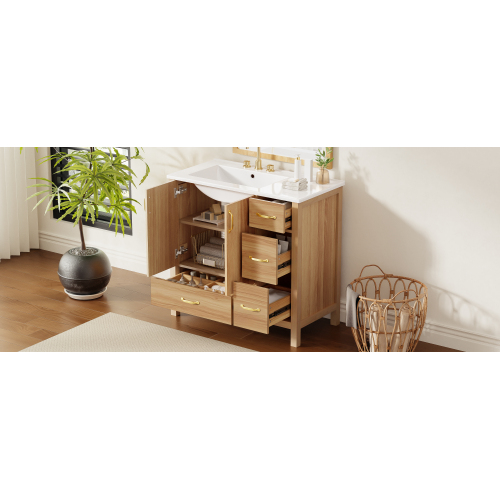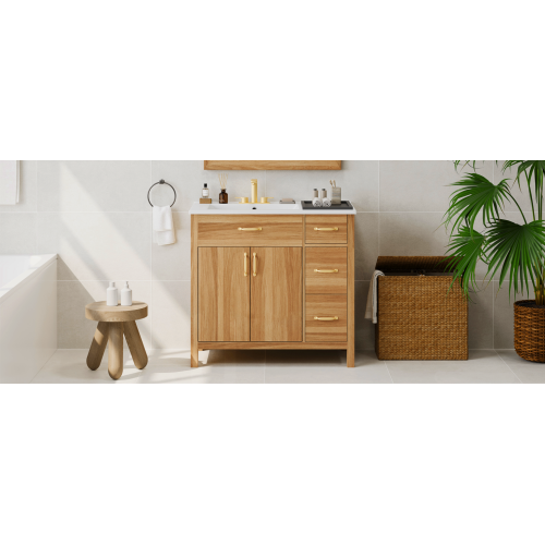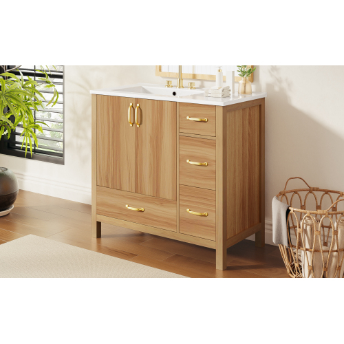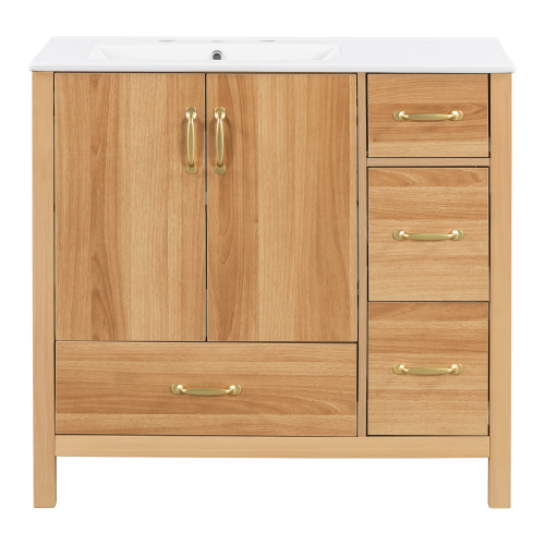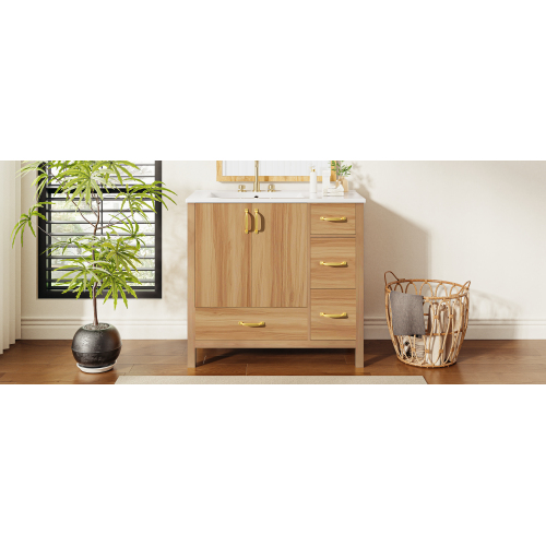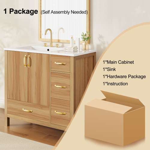 Product Name: 36" Wood Bathroom Vanity with Solid Wood Frame, 2 Soft Close Doors, 3 Soft Close Drawers, Adjustable Shelf, Modern Storage Cabinet for Small Bathrooms