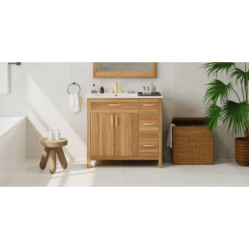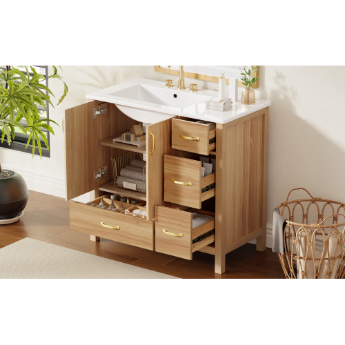 • 36" Wood Bathroom Vanity with Solid Wood Frame, 2 Soft Close Doors, 3 Soft Close Drawers, Adjustable Shelf, Modern Storage Cabinet for Small Bathrooms