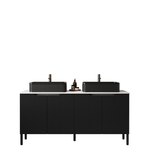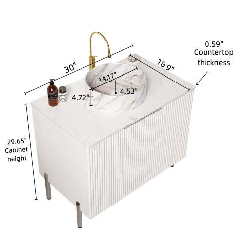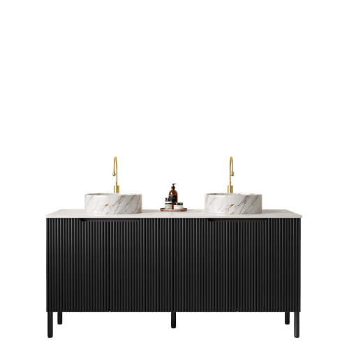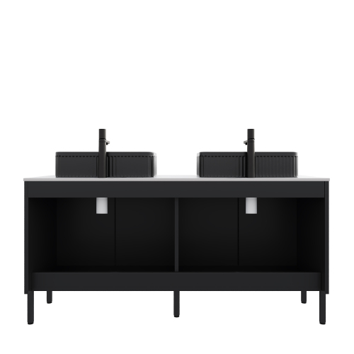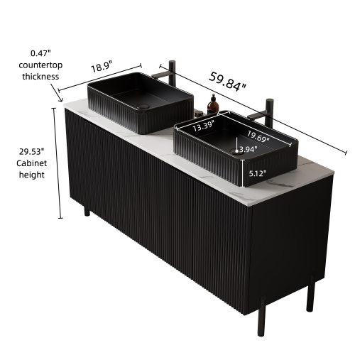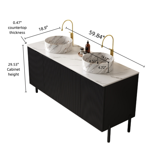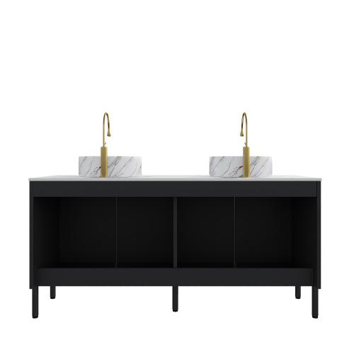 Product Name: TURIO 30" Bathroom Vanity with Sink, Freestanding Bathroom Storage Cabinet with 2 Doors, Black Ceramic Basin and Carrara White Counter Top, Black Color