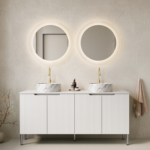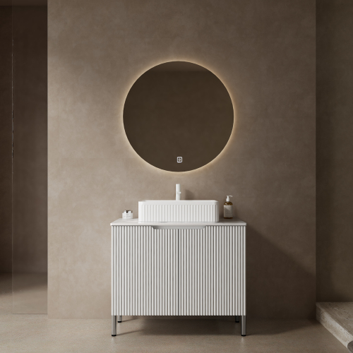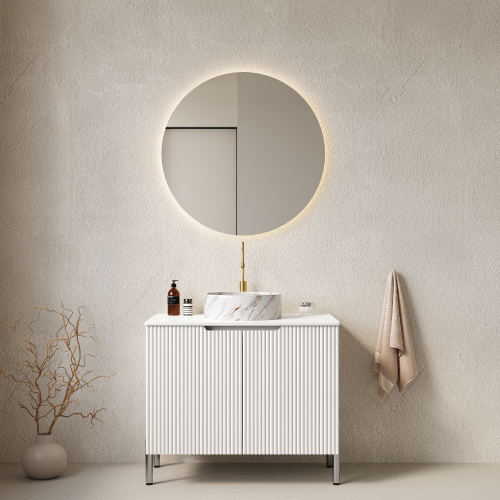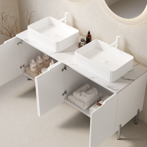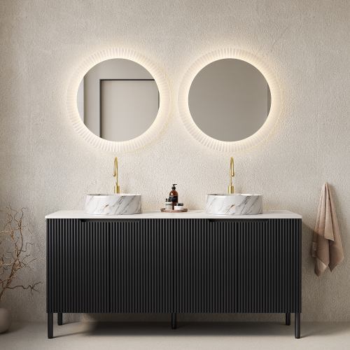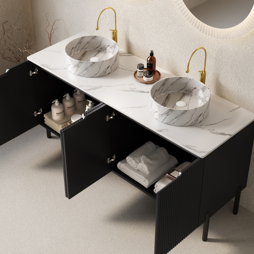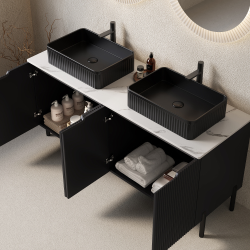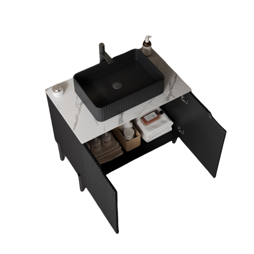 • TURIO 30" Bathroom Vanity with Sink, Freestanding Bathroom Storage Cabinet with 2 Doors, Black Ceramic Basin and Carrara White Counter Top, Black Color