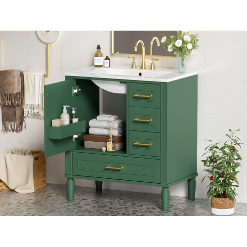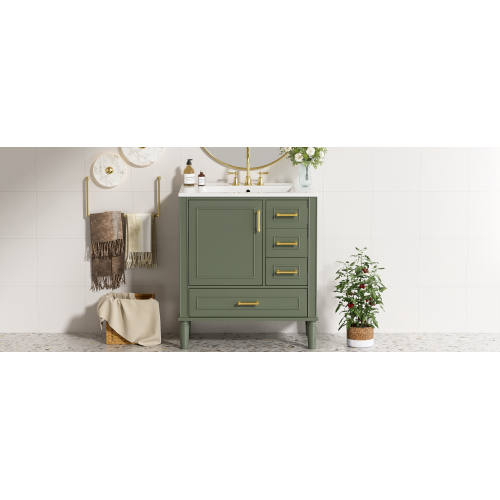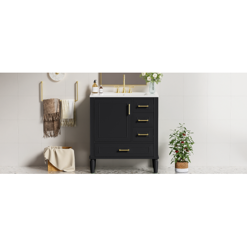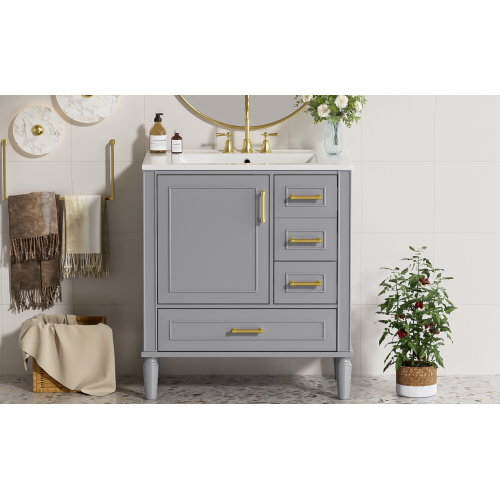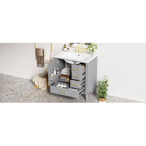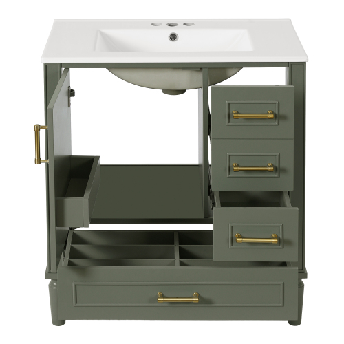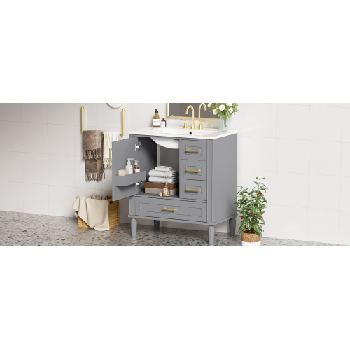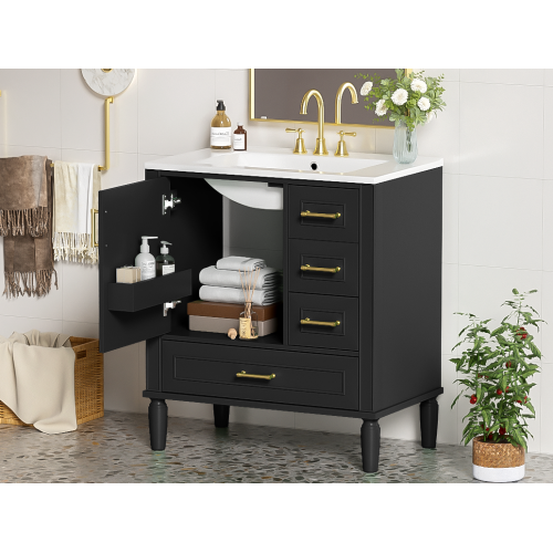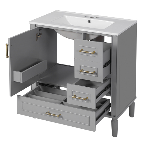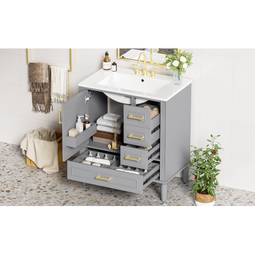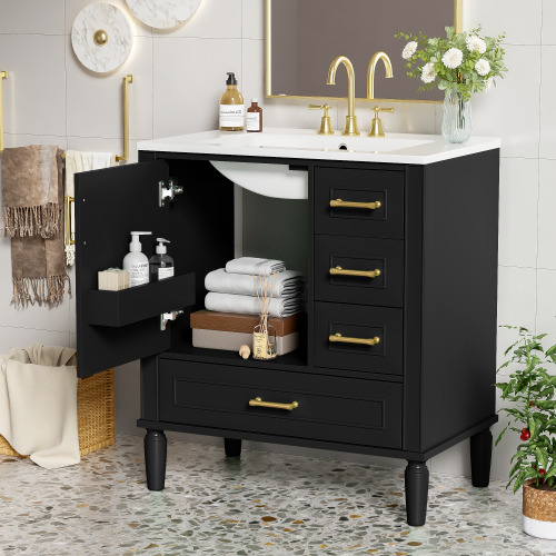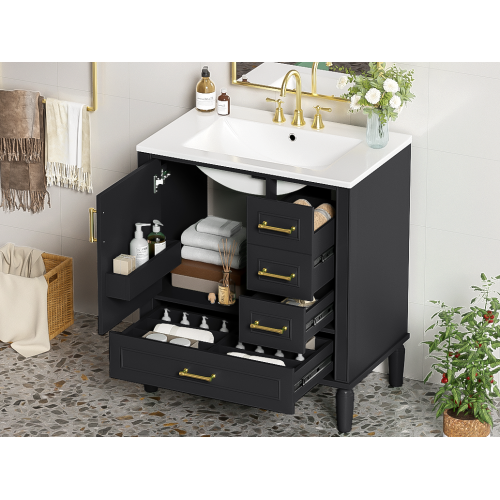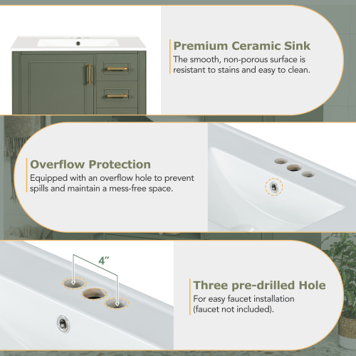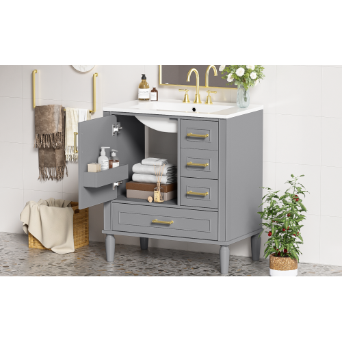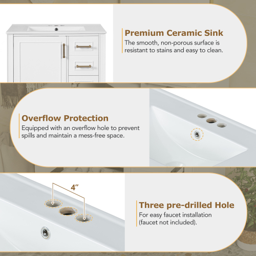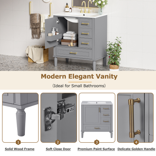 Product Name: 30" Bathroom Vanity with Ceramic Sink, Soft-Close Door with Built-in Shelf, Deep Drawer, Standard Drawer, Long Divider Drawer, Ample Storage Cabinet for Bathroom, Modern & Functional Design