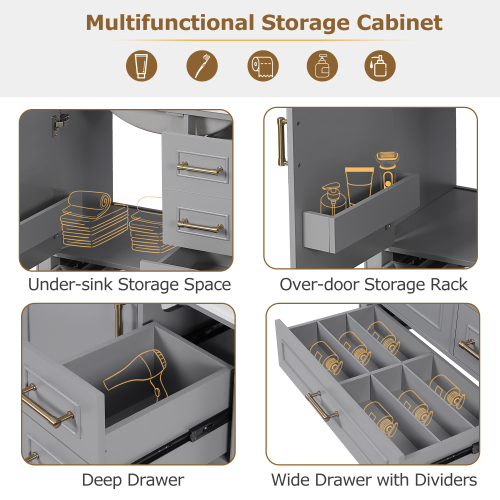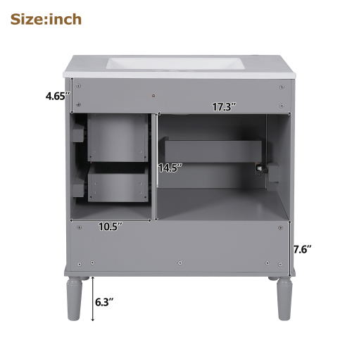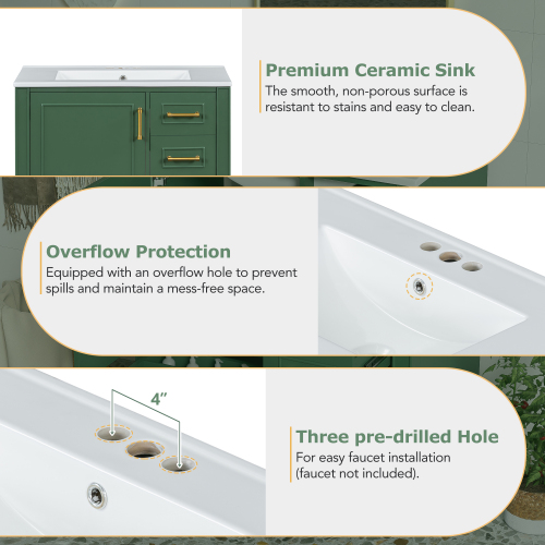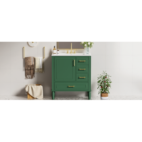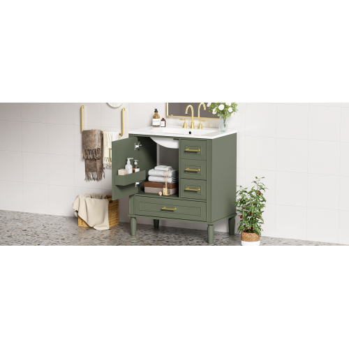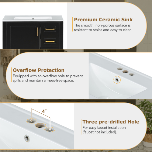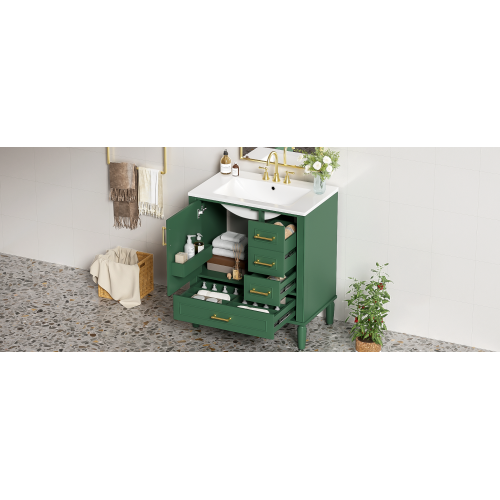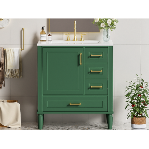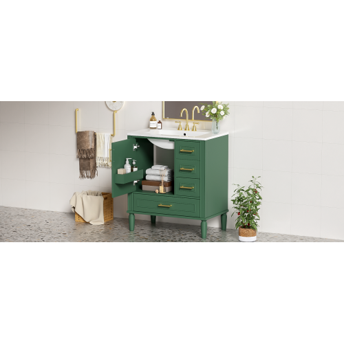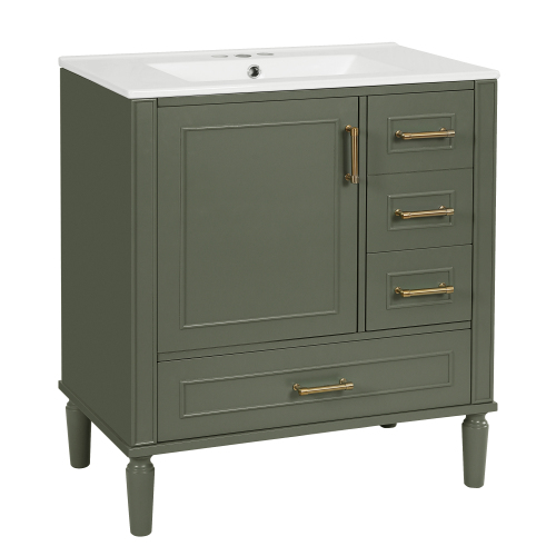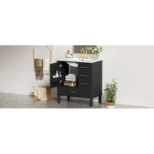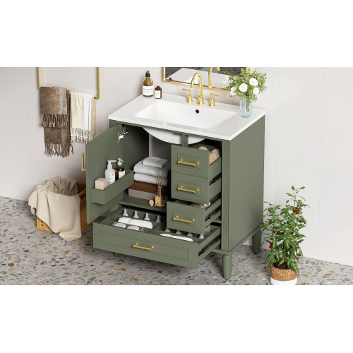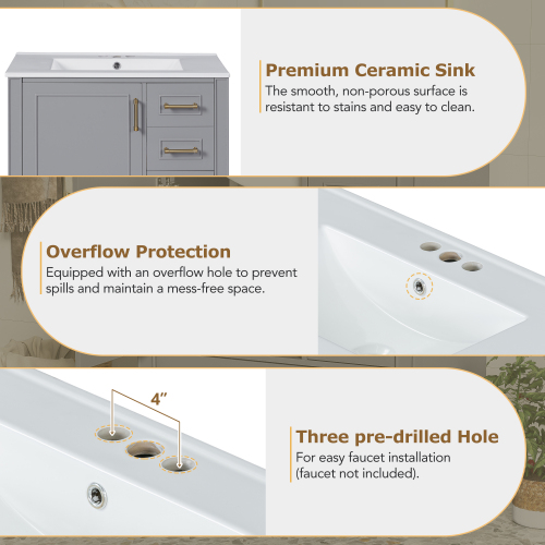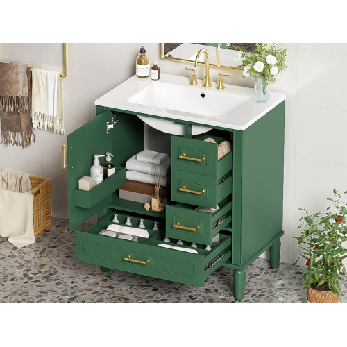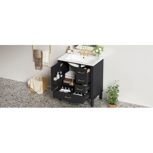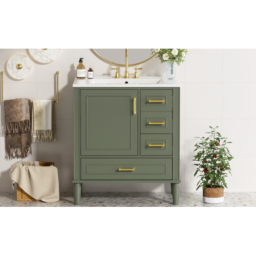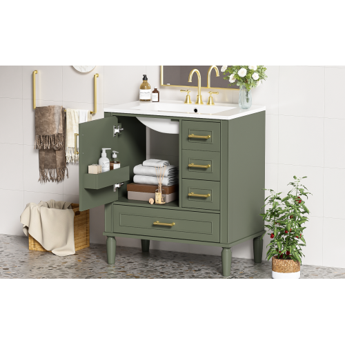Product Name: 30" Bathroom Vanity with Ceramic Sink, Soft-Close Door with Built-in Shelf, Deep Drawer, Standard Drawer, Long Divider Drawer, Ample Storage Cabinet for Bathroom, Modern & Functional Design