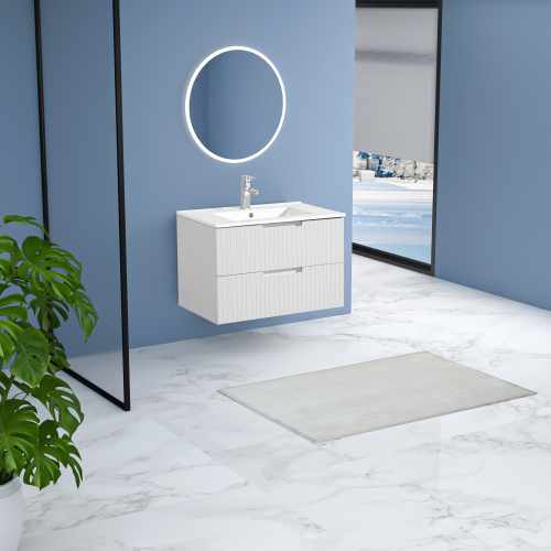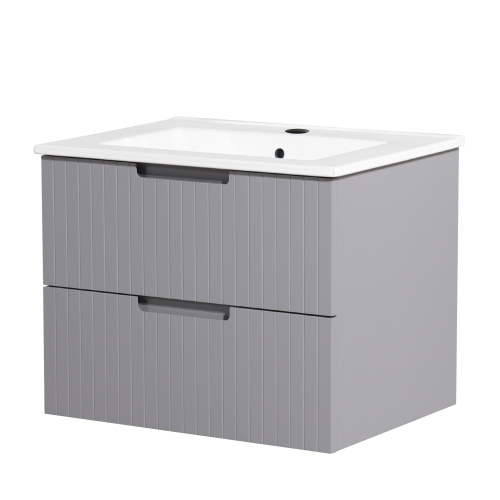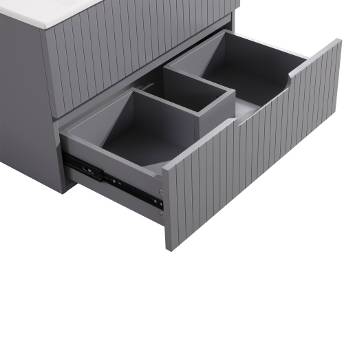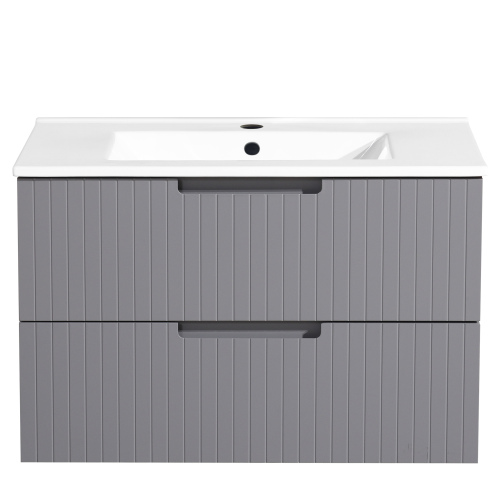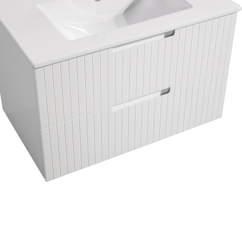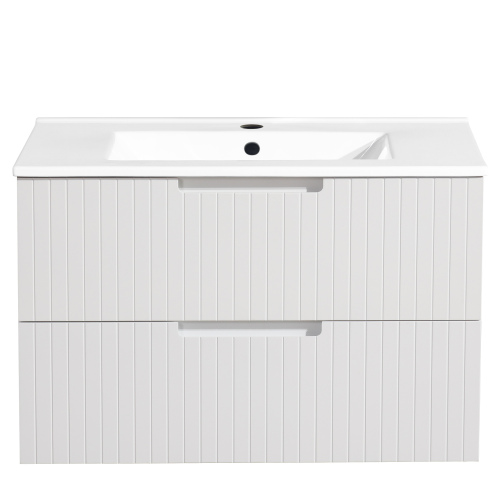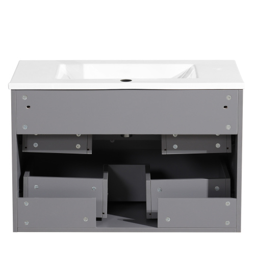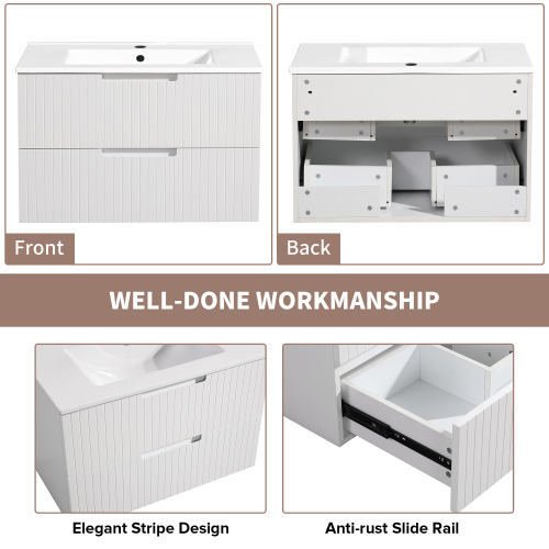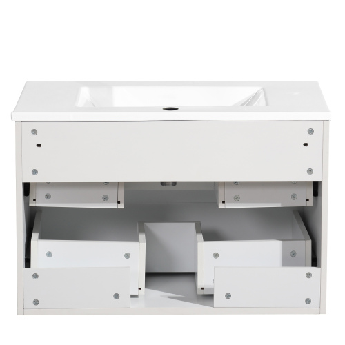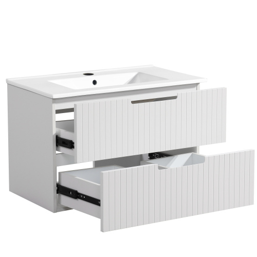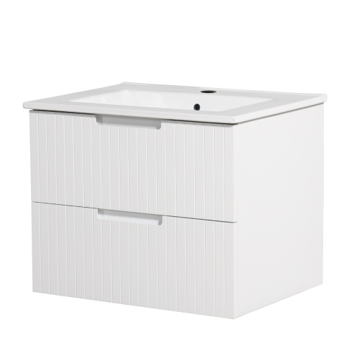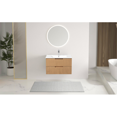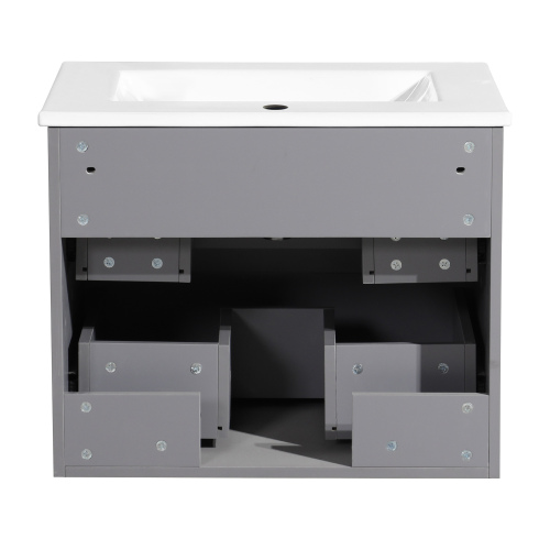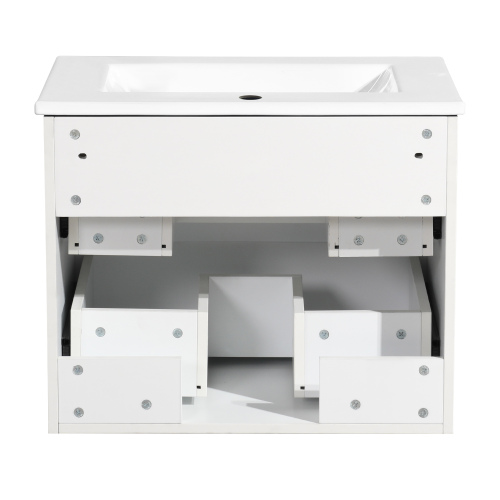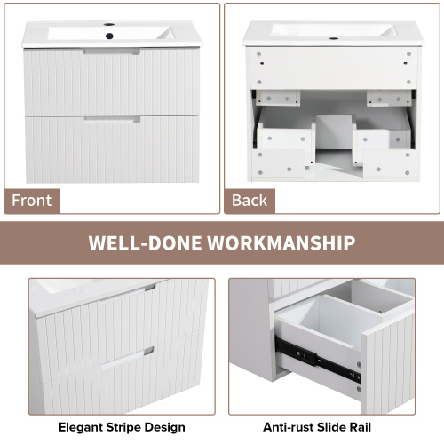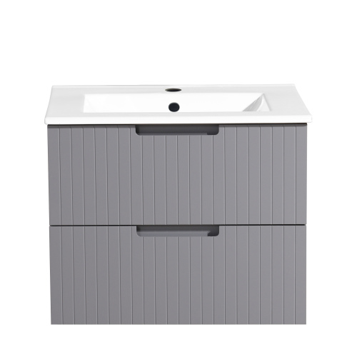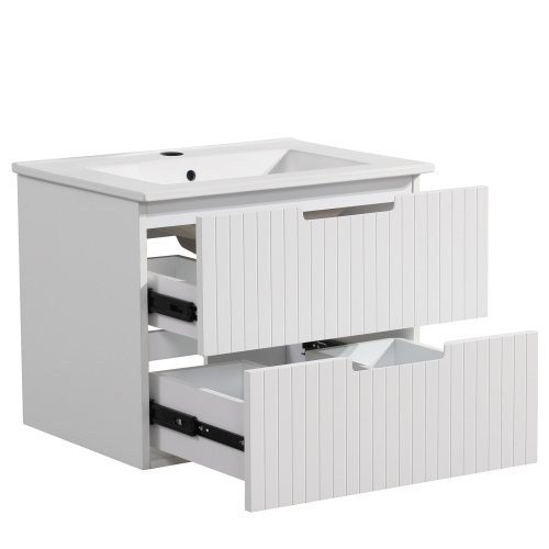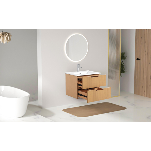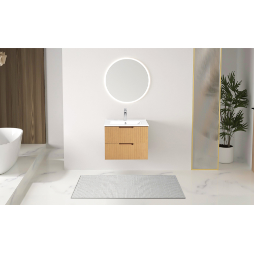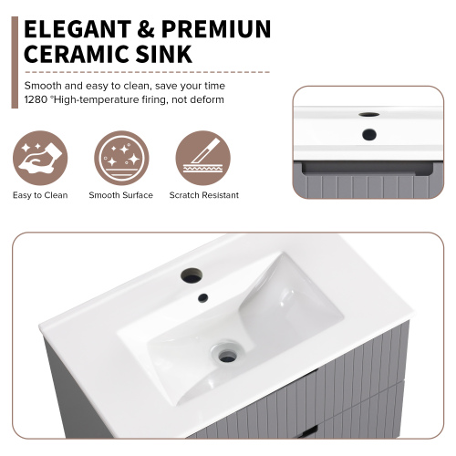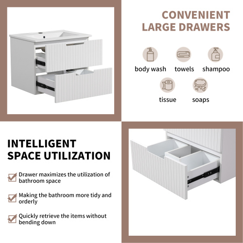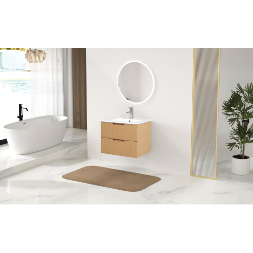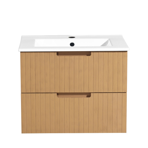 • 24 Inch Floating Bathroom Vanity with Ceramic Sink, Modern Bath Storage Cabinet Vanity with Drawers Wall Mounted Combo Set for Bathroom, Light Brown