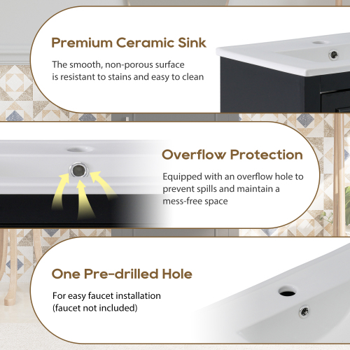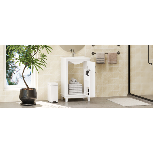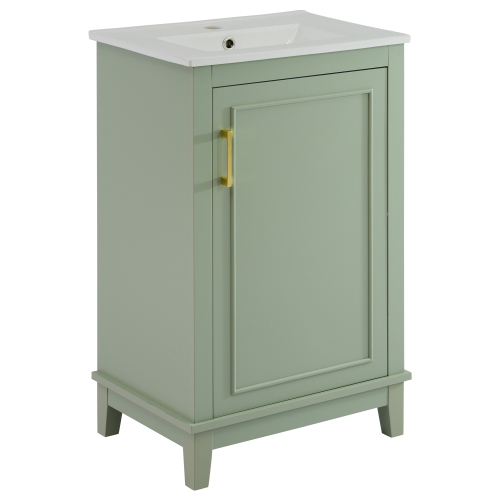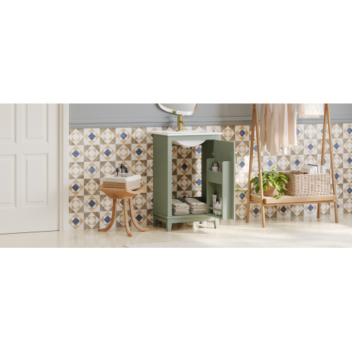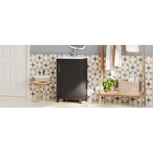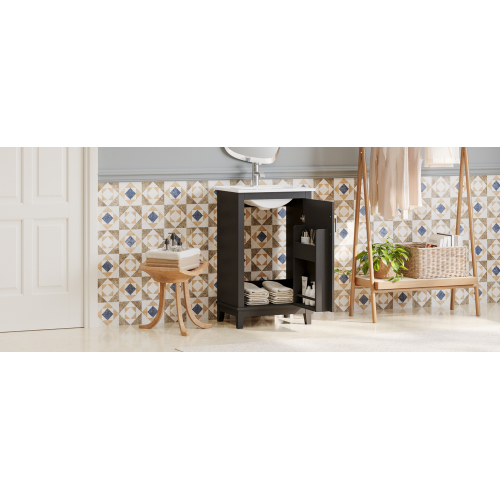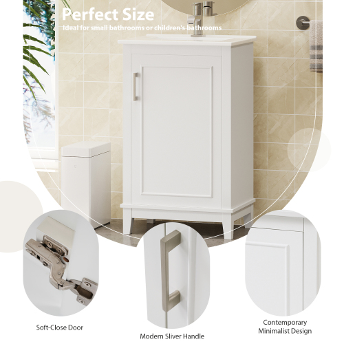 • [Viedo] 20 Inch Modern Small Bathroom Vanity Cabinet With Ceramic Basin- 20*14.5*33.3 Inches,Ample Storage,1 Soft-Close Door