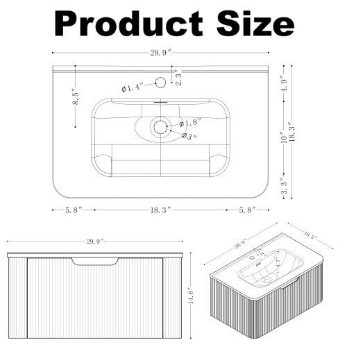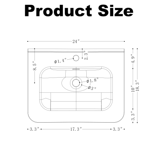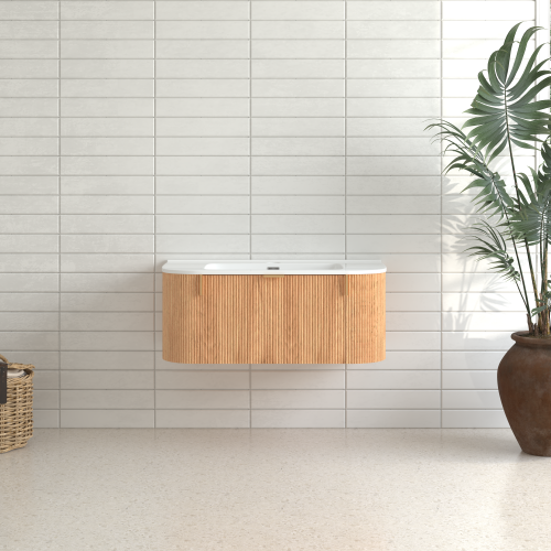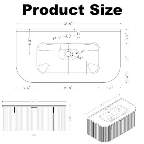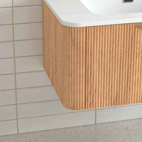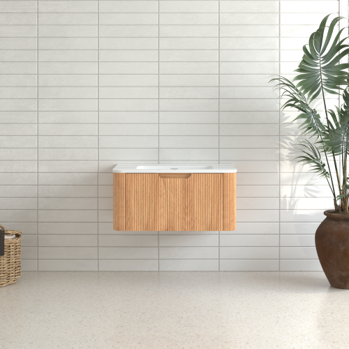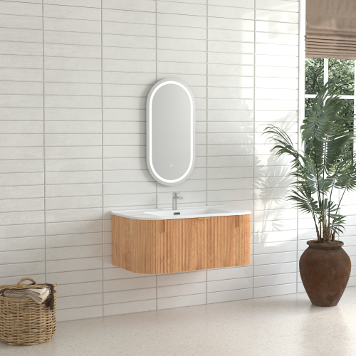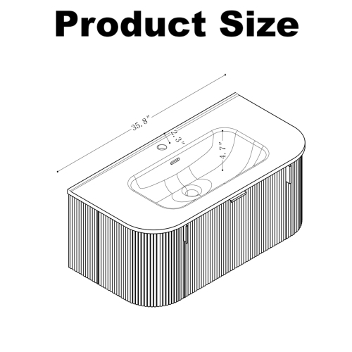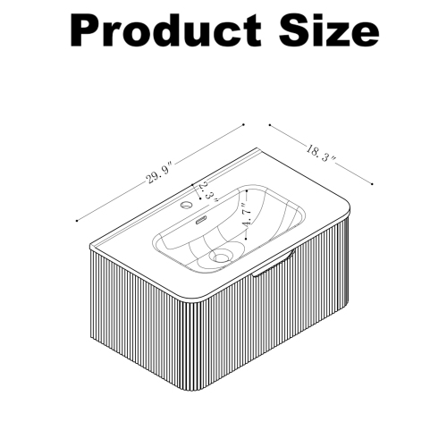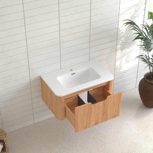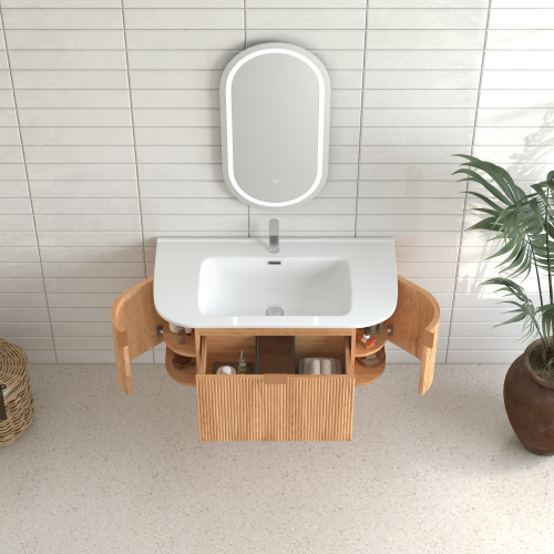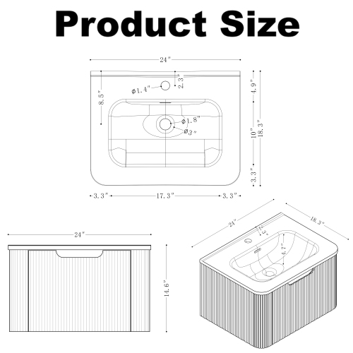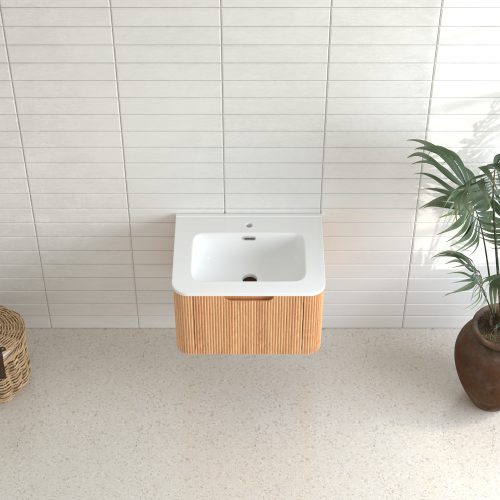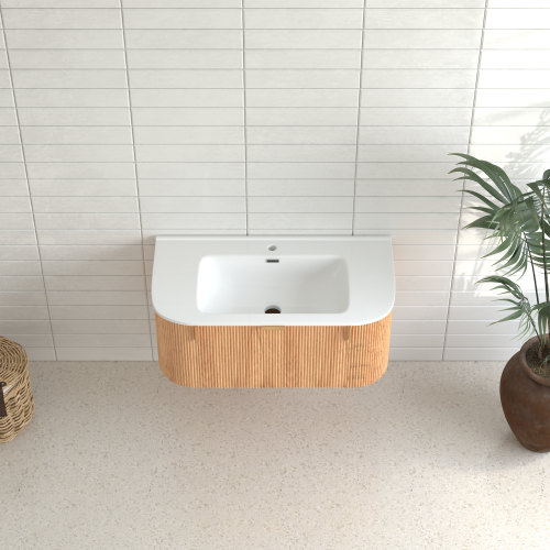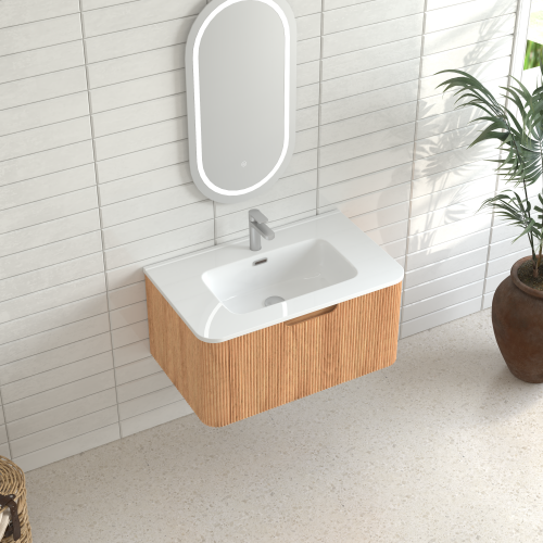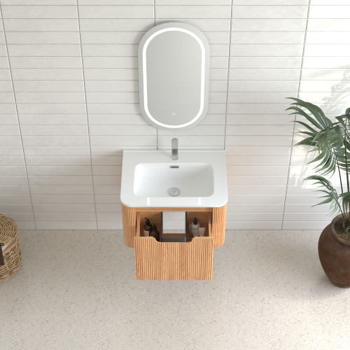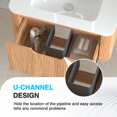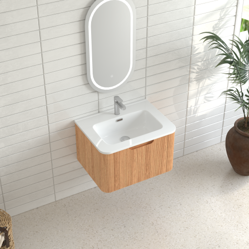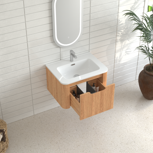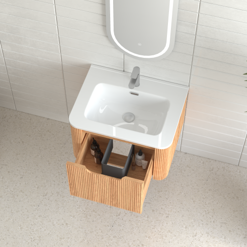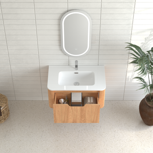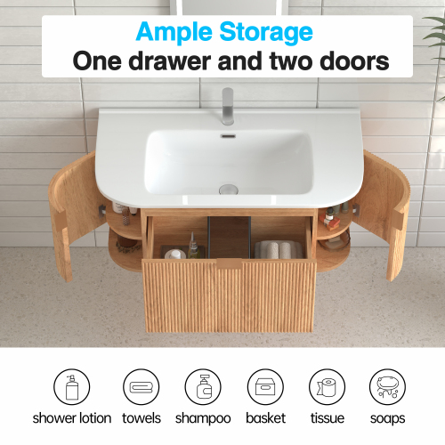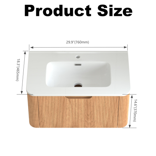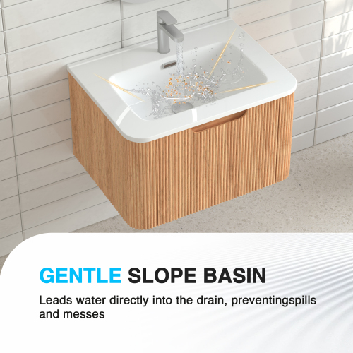 Product Name: 24" Wall-Mounted Floating Bathroom Vanity Pre-Assembled Curved Edge Storage Bathroom Cabinet in Natural Walnut Color with White Ceramic Basin