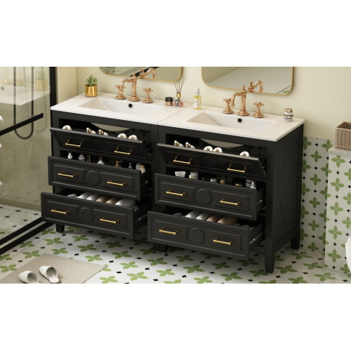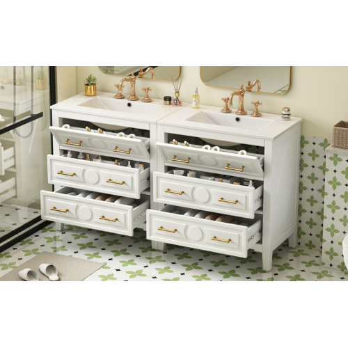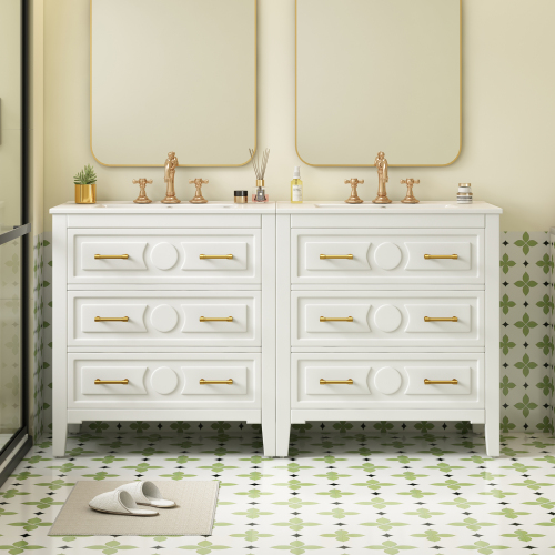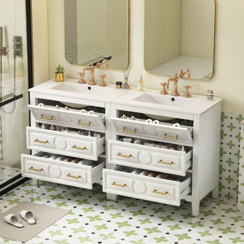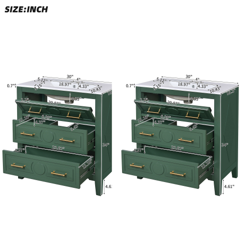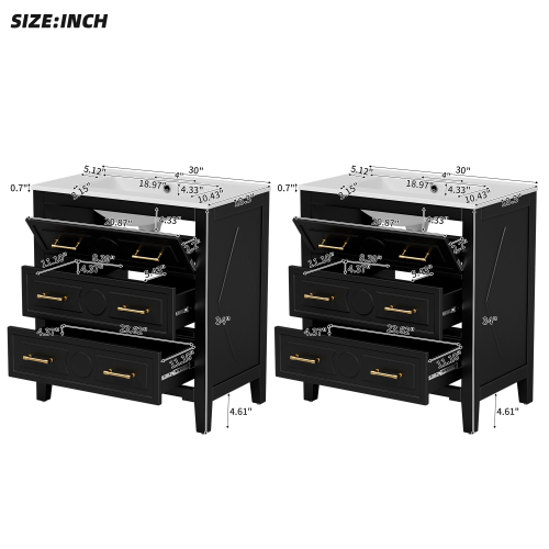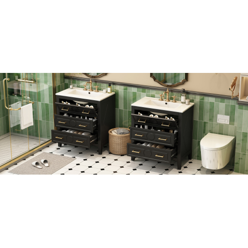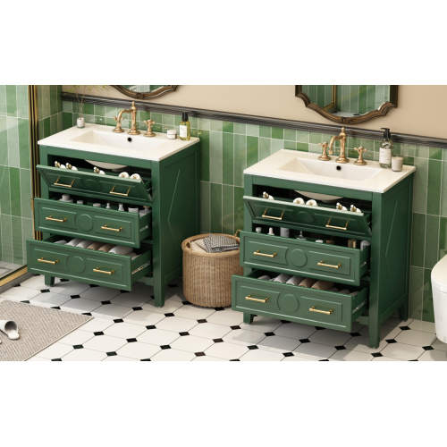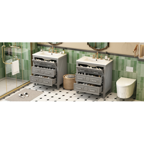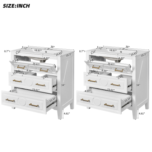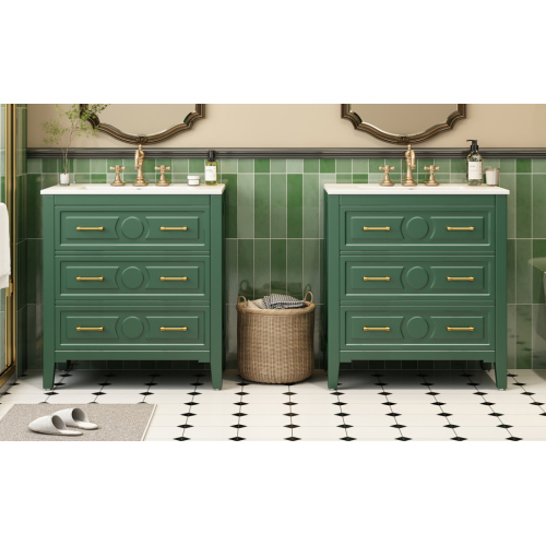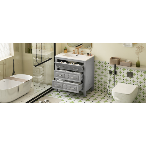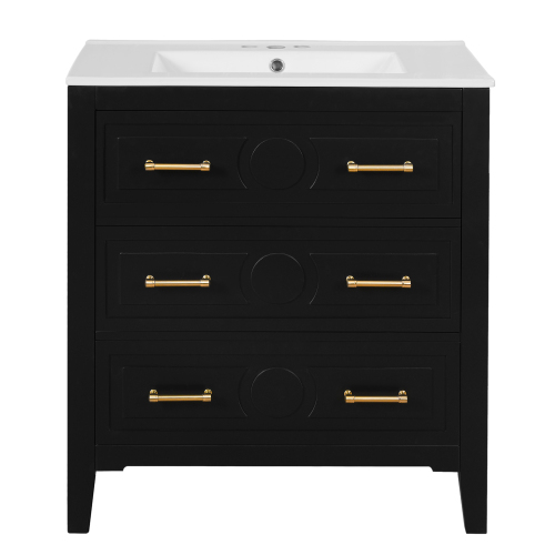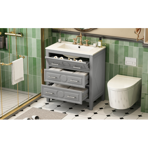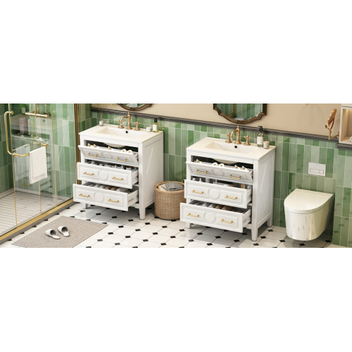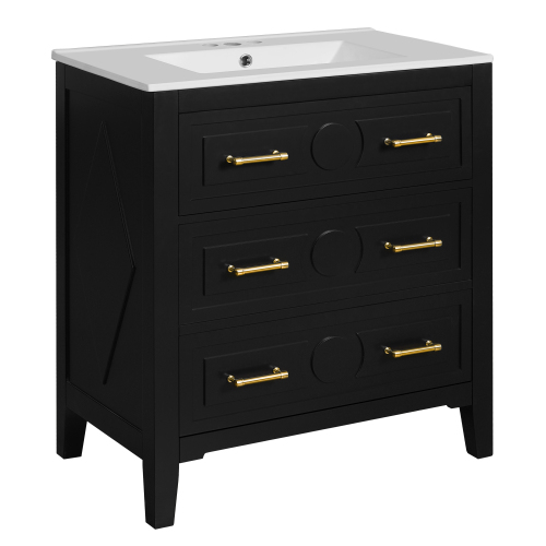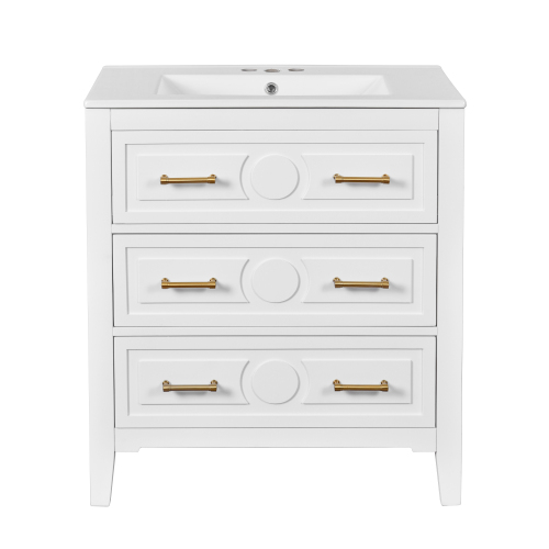 Product Name: 30'' Bathroom Vanity with Ceramic Sink Combo, Free Standing Single Vanity Set with 3 Drawers, Solid Wood Frame Bathroom Storage Cabinet, White