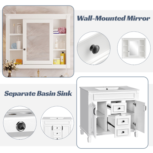 Product Name: 36'' Bathroom Vanity with Top Sink, Mirror Cabinet, Modern Bathroom Storage Cabinet with 2 Soft Closing Doors and 2 Drawers, Single Sink Bathroom Vanity
