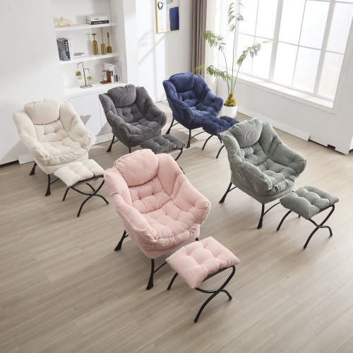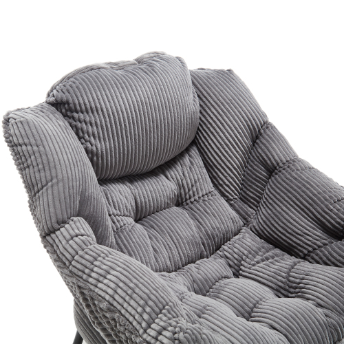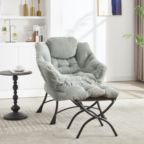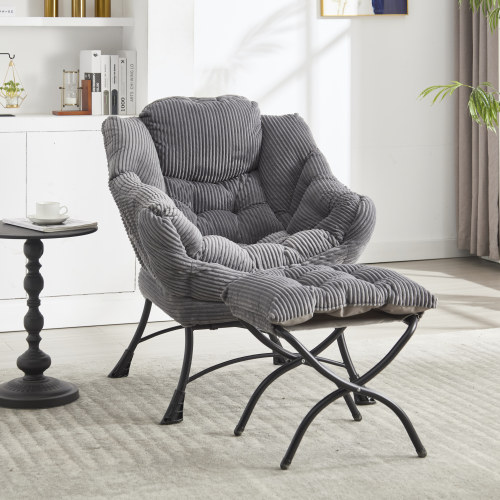 Product Name: Lazy Chair with Ottoman, Modern Lounge Accent Chair with Armrests and a Side Pocket, Leisure Upholstered Sofa Chair Reading Chair with Footrest for Small Space, Corner Chair-Grey