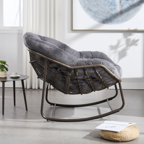 Product Name: Outdoor Rattan Rocking Chair,Padded Cushion Rocker Recliner Chair Outdoor for Front Porch, Living Room, Patio, Garden, Orange