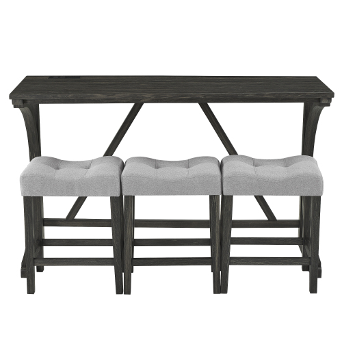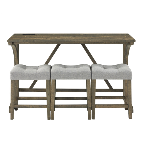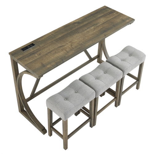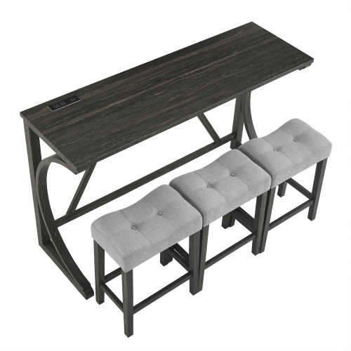 Product Name: Bar Table Set with Power Outlet, Bar Table and Chairs Set, 4 Piece Dining Table Set, Industrial Breakfast Table Set, for Living Room, Dining Room, Game Room