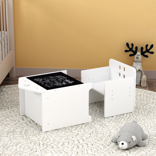 • Kids Montessori Weaning Table and Chair Set, Wooden Toddler Table and Chair Set Kids Activity Table Step Stools with Blackboard & 3 Heights Adjustable, 1-3 Age Kids Funiture for Eating Drawing Reading