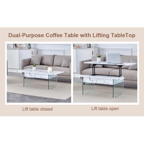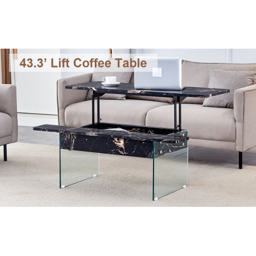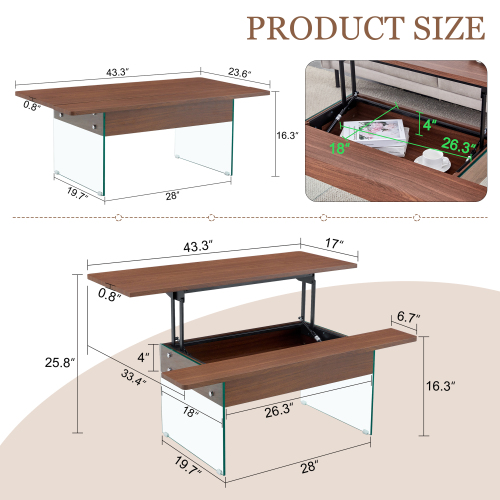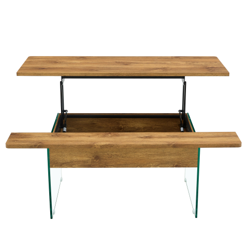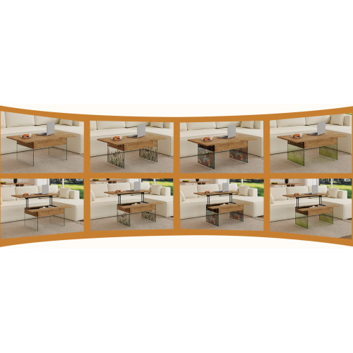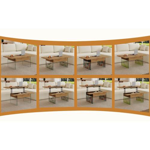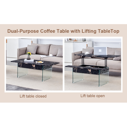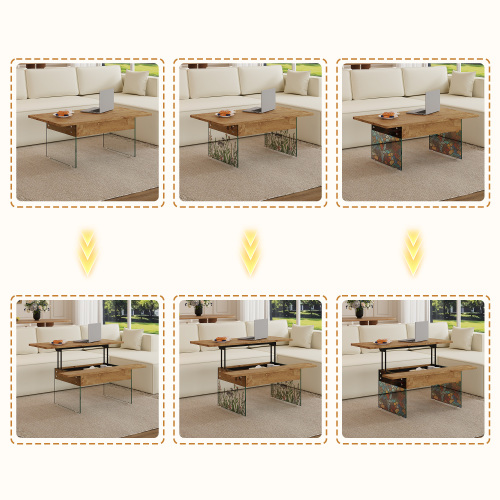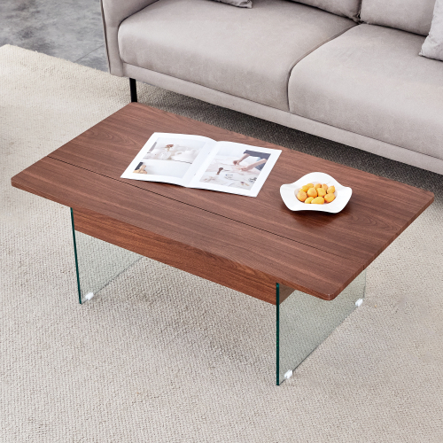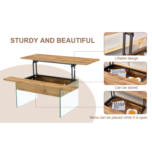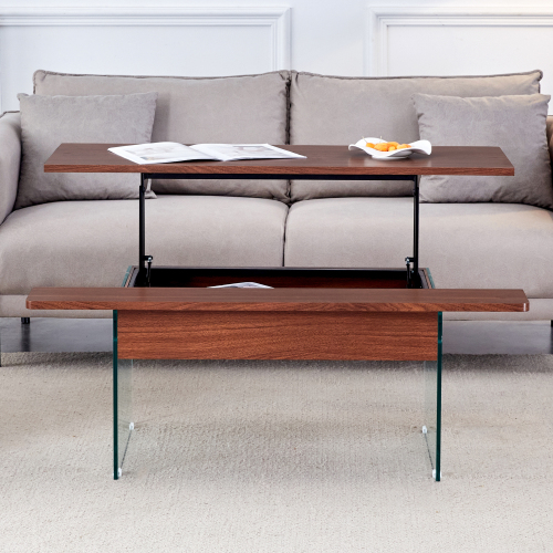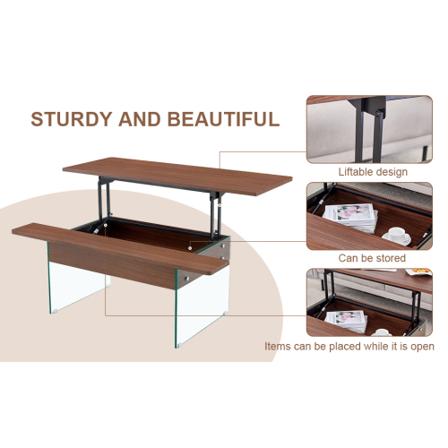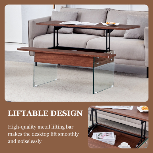 Product Name: Multifunctional Lift Top Coffee Table -Dark Wood Color Grain Sticker, Essential for Modern Homes.Tempered Glass Legs,Lift Top Feature.Perfectly Fitting Into Living Rooms And Office.
