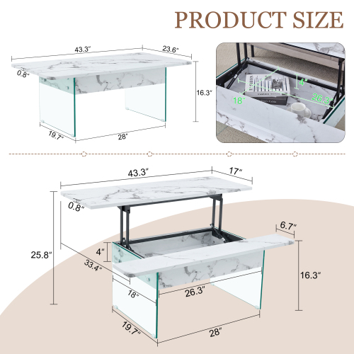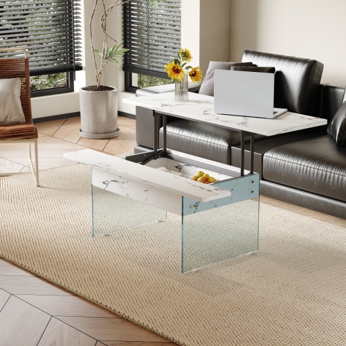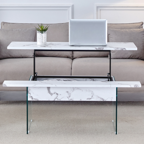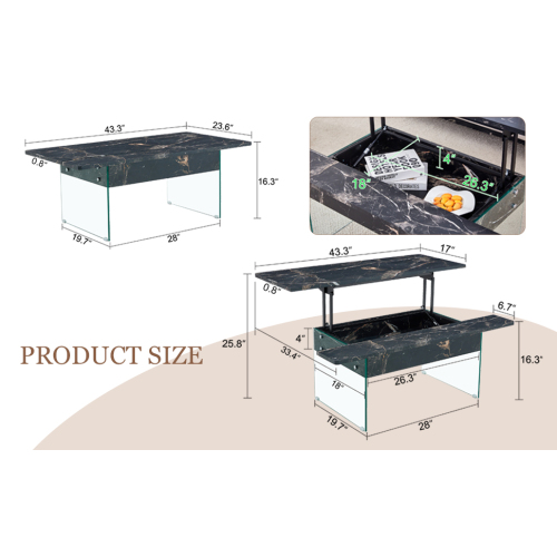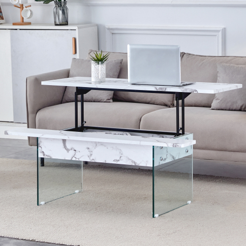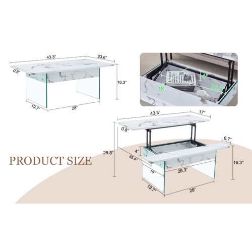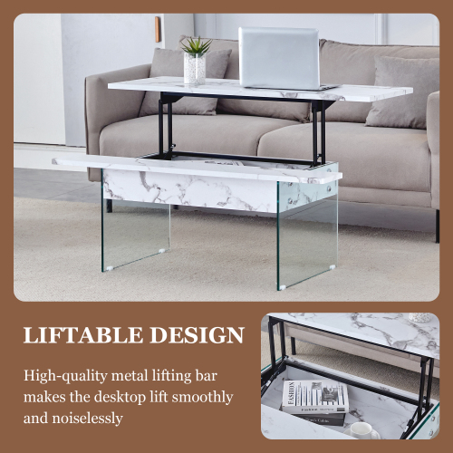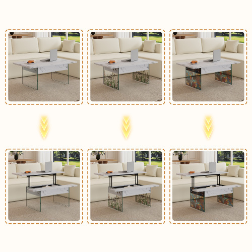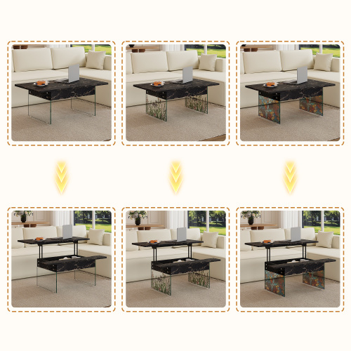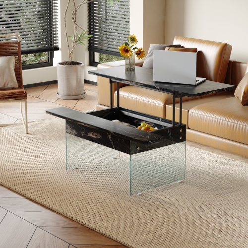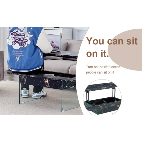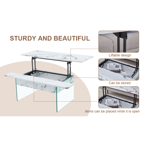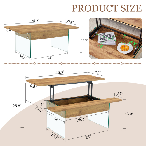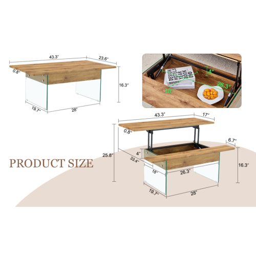 Product Name: Multifunctional Lift Top Coffee Table -Dark Wood Color Grain Sticker, Essential for Modern Homes.Tempered Glass Legs,Lift Top Feature.Perfectly Fitting Into Living Rooms And Office.