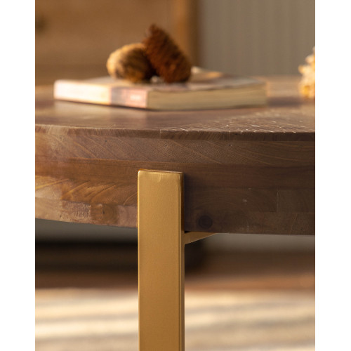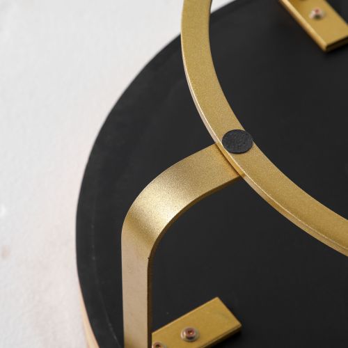 Product Name: Modern Round Coffee Table Wooden Carving Pattern Coffee Table with Metal Legs for Living Room Reception Room Office ,Black