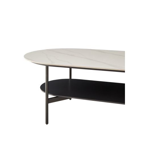Product Name: Coffee table ceramic Coffee Table, MDF painting Double Layer Coffee Table for Living Room, white ceramic and Coffee Brown Bottom Shelf