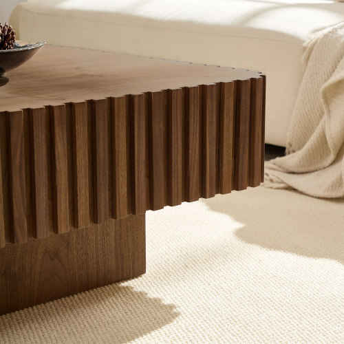 Product Name: 31.5 Inch Modern Handcraft Drum Coffee Table Square Coffee Table for Living Room,Small Wooden Coffee Table with Sturdy MDF Pedesta,Walnut Color