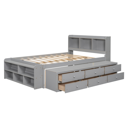 • Full Bed with Bookcase Headboard, Under bed Storage Drawers and Bed End Storage Case,White