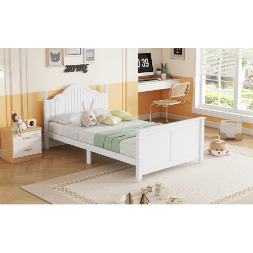 • Full Size Bed For Kids, Wood Full Platform Bed with Headboard and Footboard, White (Expect Arrival Date 2025/9/30)