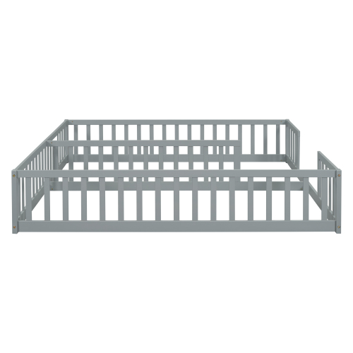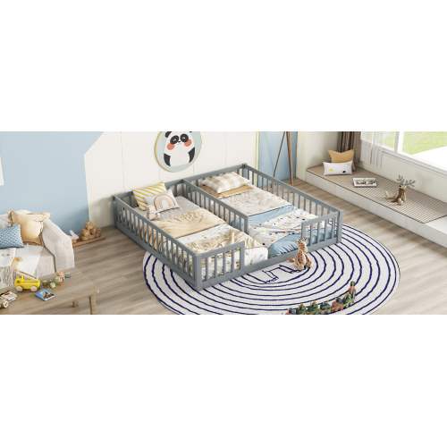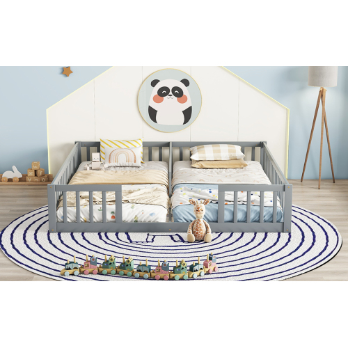 Product Name: Double Twin Floor Bed with Fence, Guardrails, without door, Grey