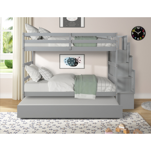Product Name: Twin over Twin Bunk Beds With Twin Trundle and Stairway Storage Function in White color