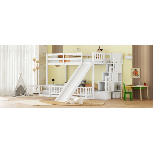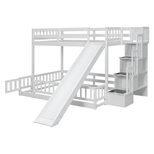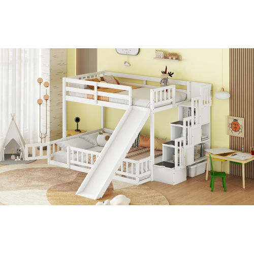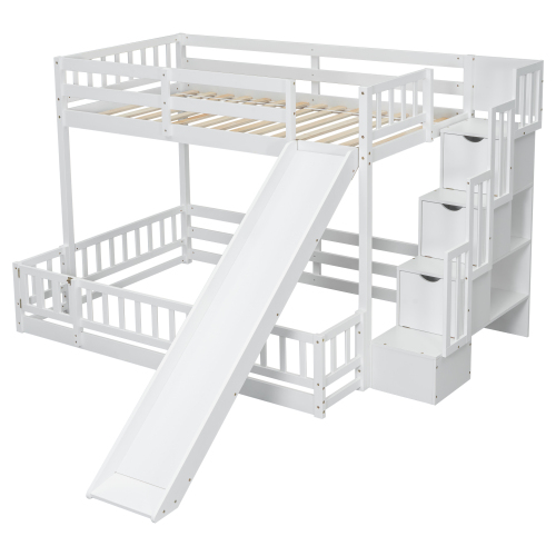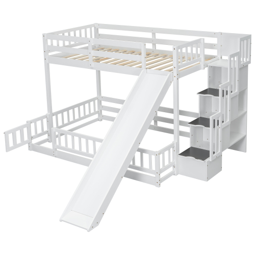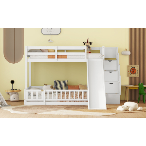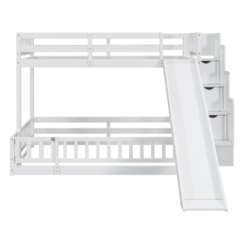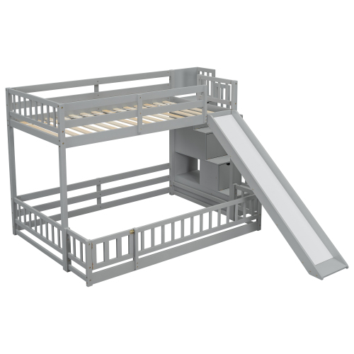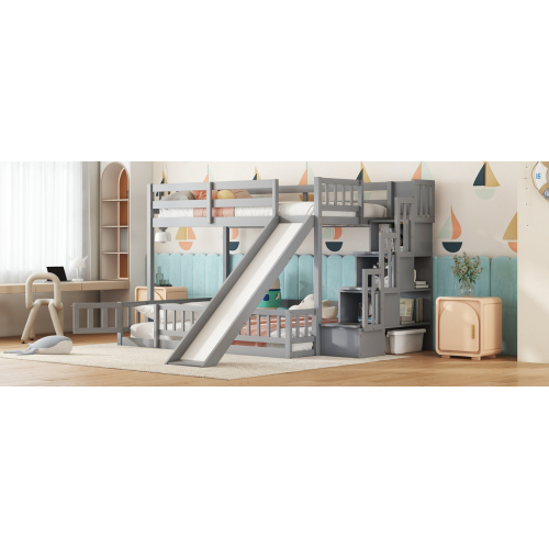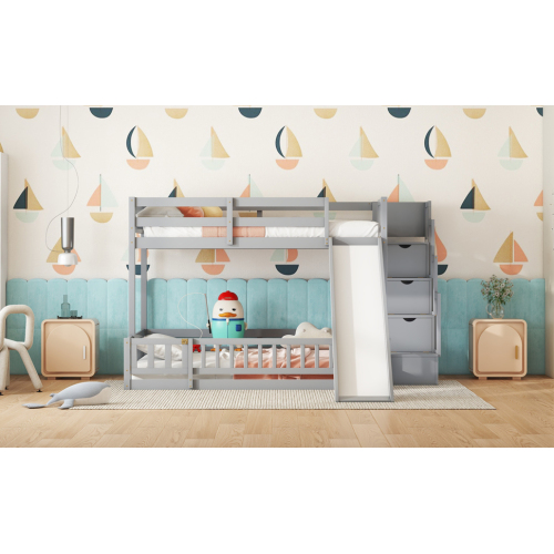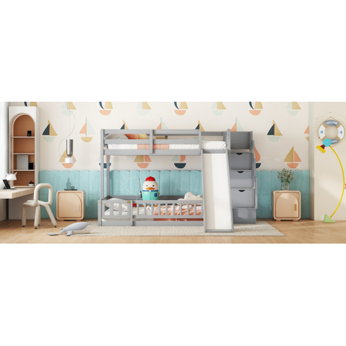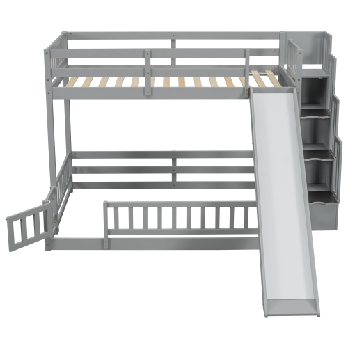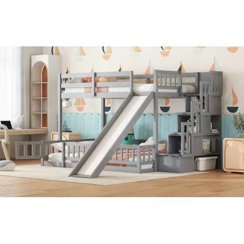 Product Name: Twin Over Full Bunk Bed with Slide, Storage Staircase, Pine Solid Wooden Bunk Bed with Safety Guardrails ,Grey
