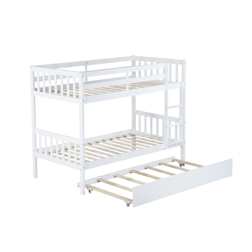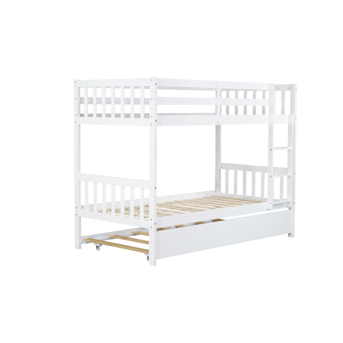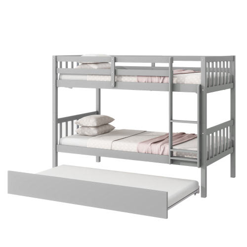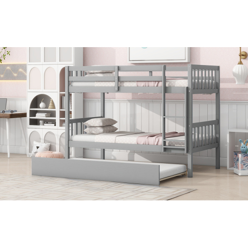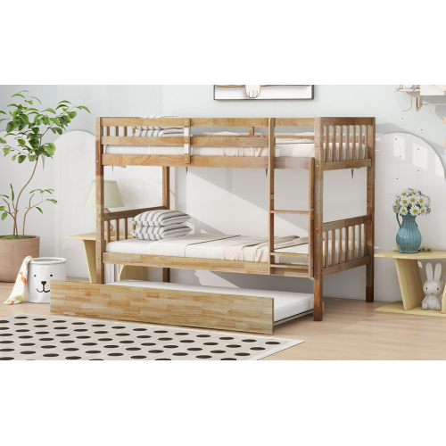 Product Name: Twin Over Twin Rubber Wood Bunk Bed with Trundle, Convertible into Twin Size Beds, Twin Size Bunk Bed with Ladder and Safety Guardrails,Espresso
