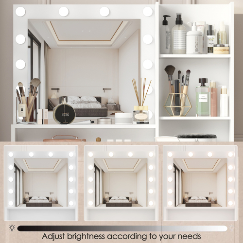 • Vanity Desk with Mirror & Light, Large Drawer Three Level Storage Dresser, 3 Lighting Modes Adjustable Brightness, Bedroom Dressing Table(Pink)