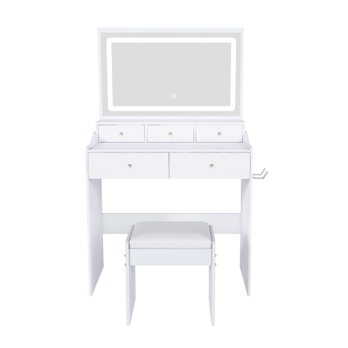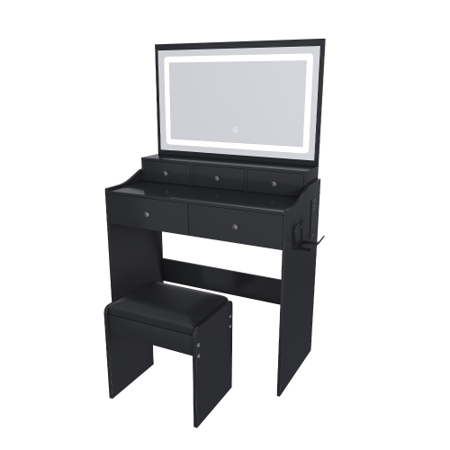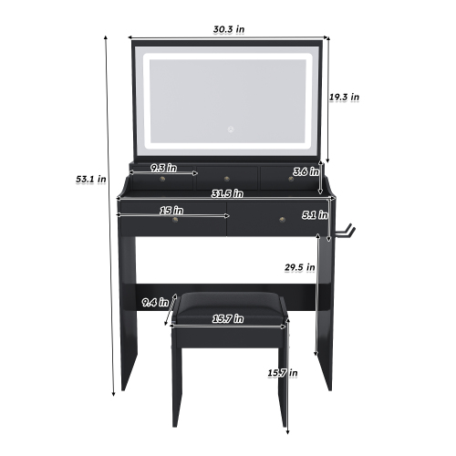 Product Name: New Large Mirror Vanity Desk for Bed room , Modern Makeup Vanity Set with Power Outlet and Hair dryer holder, 5 Drawers , 3 Lighting Color Adjustable Dressing Table for Bedroom, Black Color