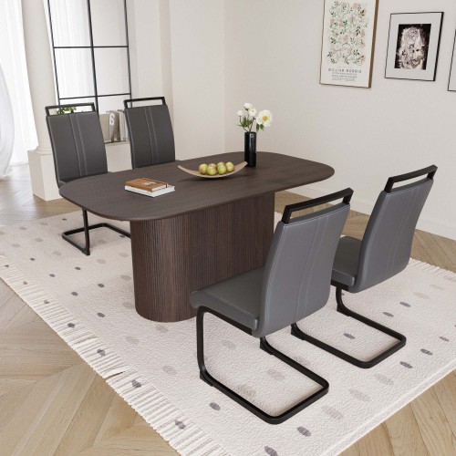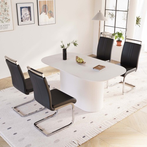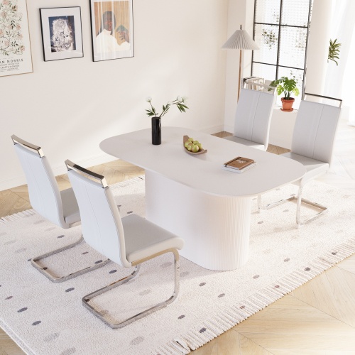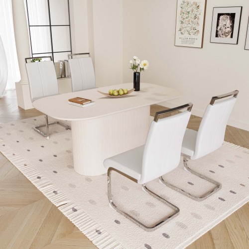 63 "medieval modern cream style MDF dining table and PU armless dining chair set 4. Assemble Desktop and Silver plated metal leg dining chair set, suitable for home&kitchen