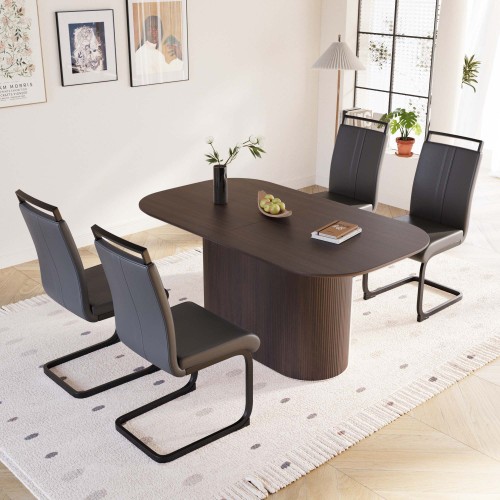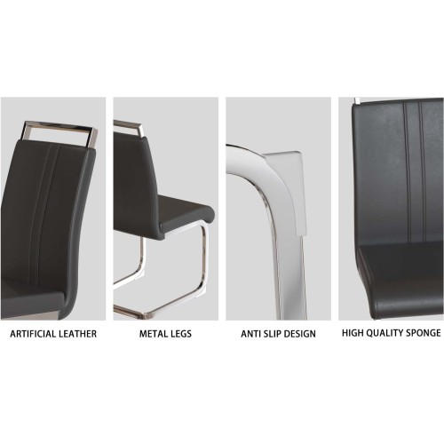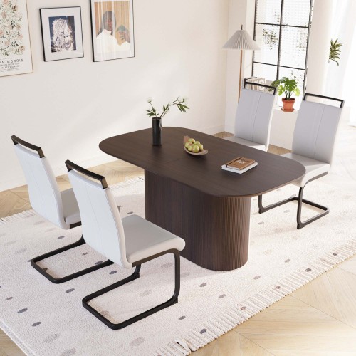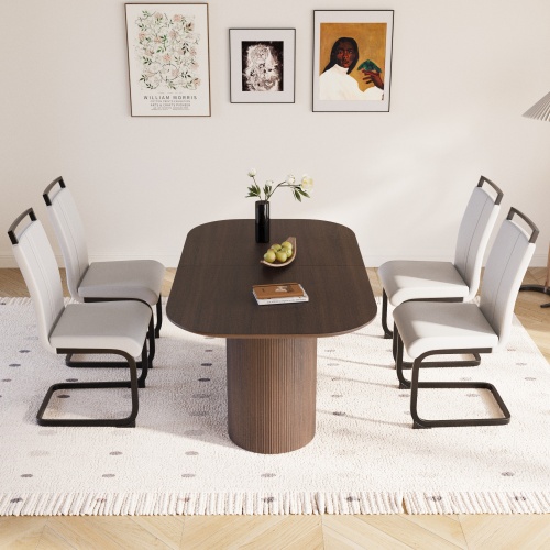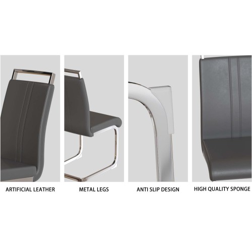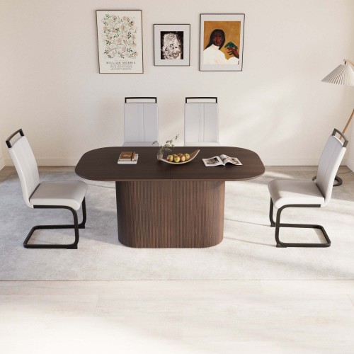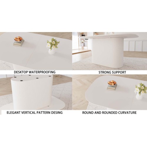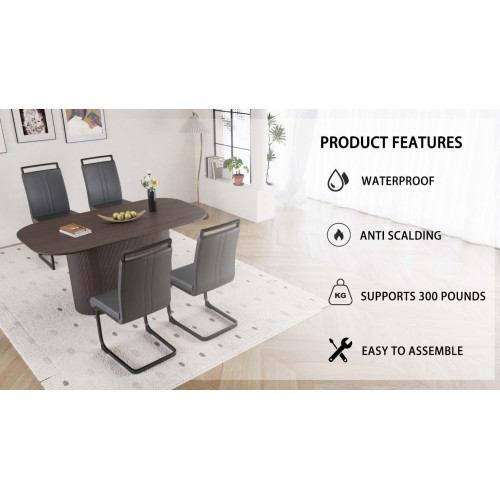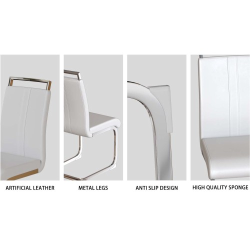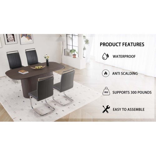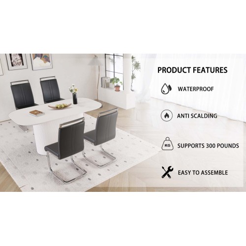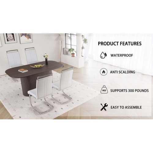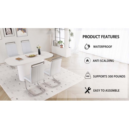 • 63 "medieval modern cream style MDF dining table and PU armless dining chair set 4. Assemble Desktop and Silver plated metal leg dining chair set, suitable for home&kitchen